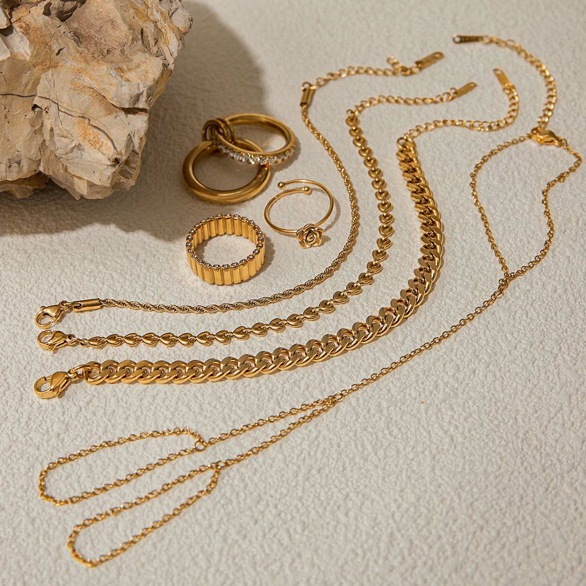 Cubic Zirconia Micro Pave Ensembles de bijoux en acier inoxydable, Acier inoxydable 304, avec zircon cubique, Plaqué or 18K, bijoux de mode & styles différents pour le choix & pour femme, Vendu par PC