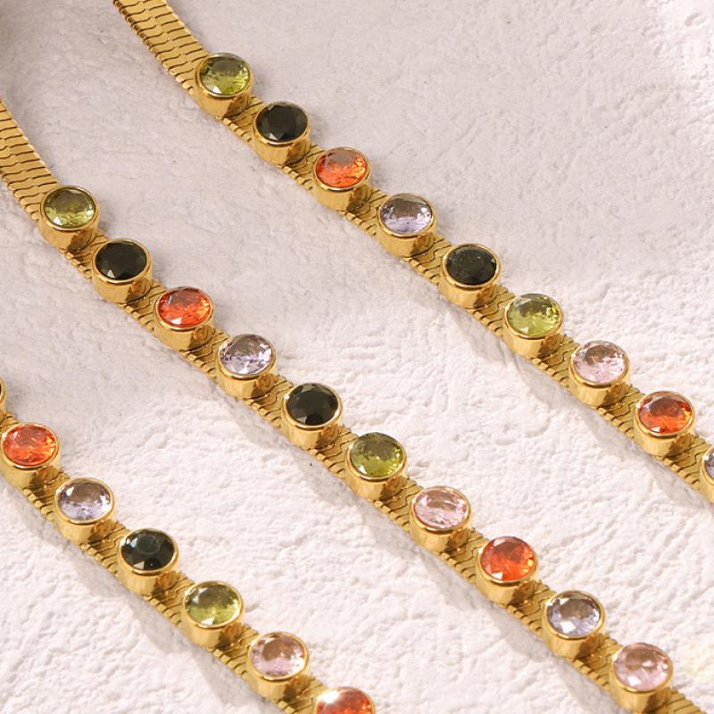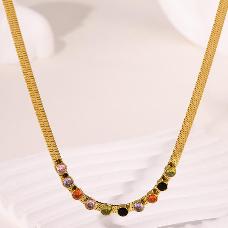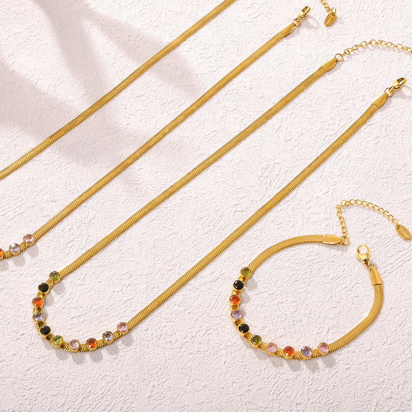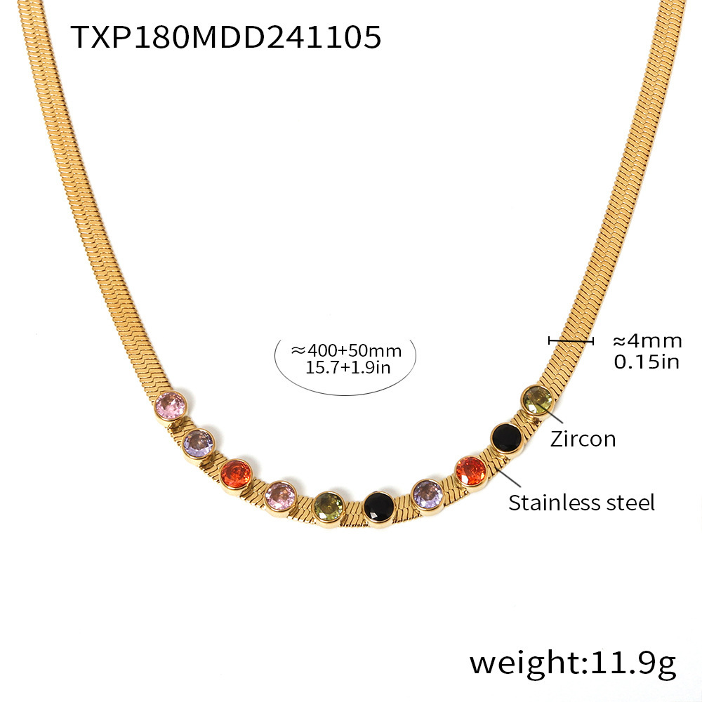 Cubic Zirconia Micro Pave Ensembles de bijoux en acier inoxydable, boucle d'oreille & collier, Placage de couleur d'or, chaîne ovale & avec zircone cubique, plus de couleurs à choisir 1.5mm Environ 17 pouce, Vendu par fixé