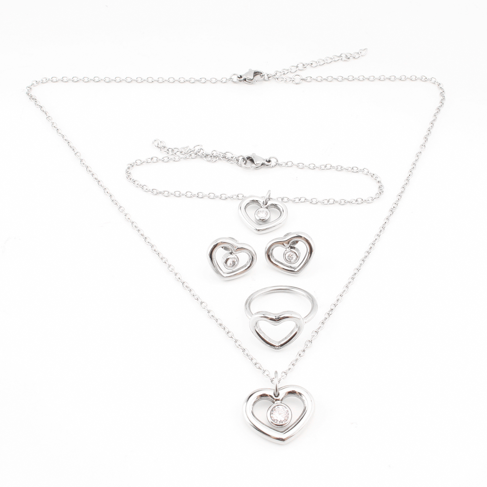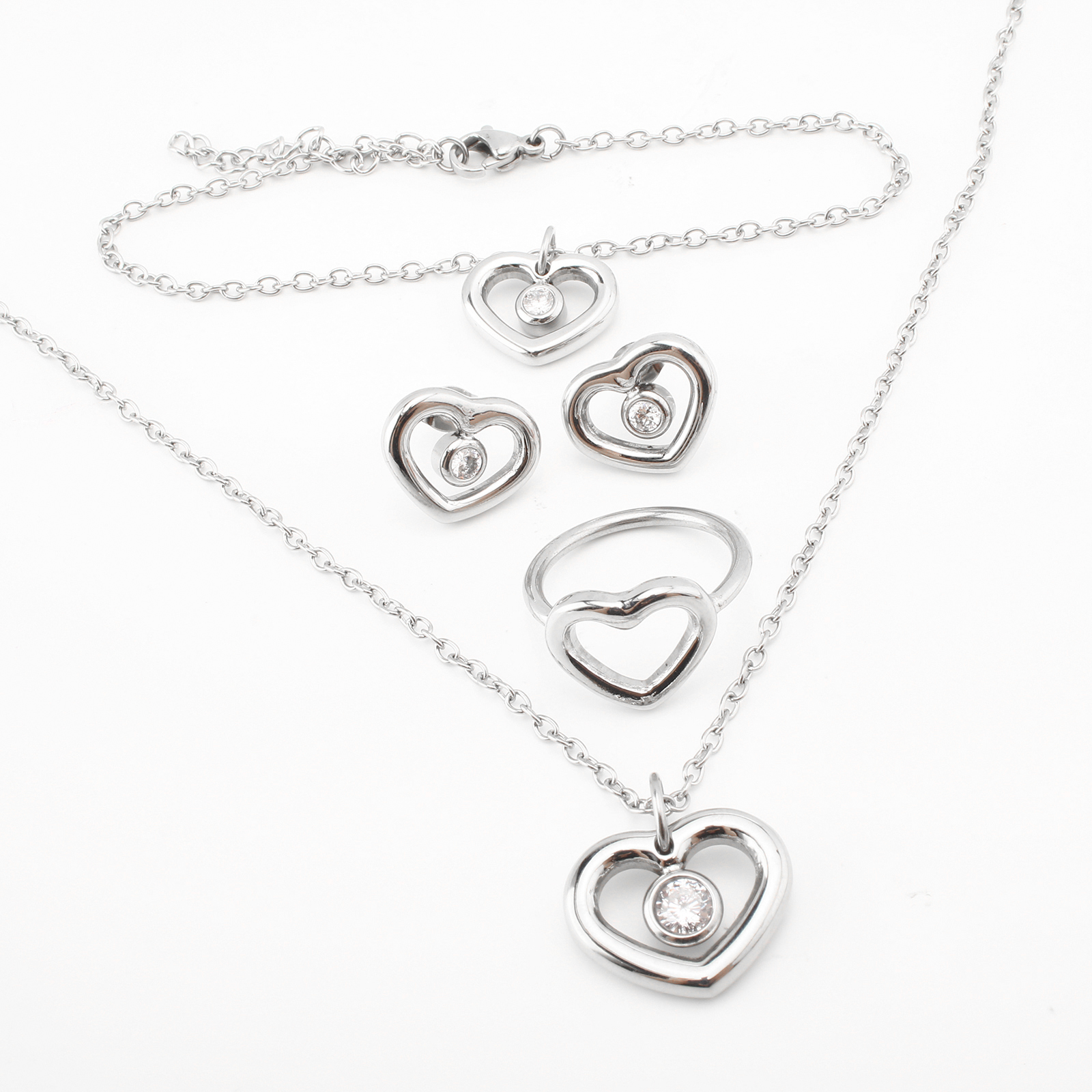 Cubic Zirconia Micro Pave Ensembles de bijoux en acier inoxydable, Acier inoxydable 304, avec zircon cubique, styles différents pour le choix & pour femme & creux, couleur originale, Vendu par PC