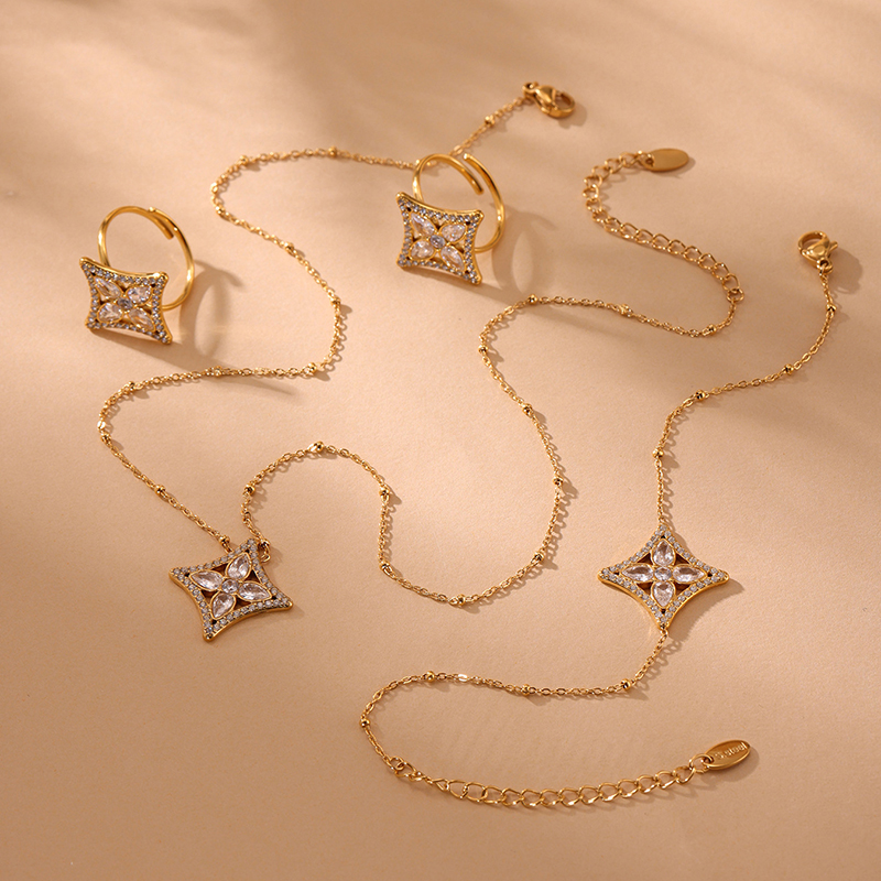 Cubic Zirconia Micro Pave Ensembles de bijoux en acier inoxydable, Acier inoxydable 304, Placage, styles différents pour le choix & pavé de micro zircon & pour femme, Vendu par PC