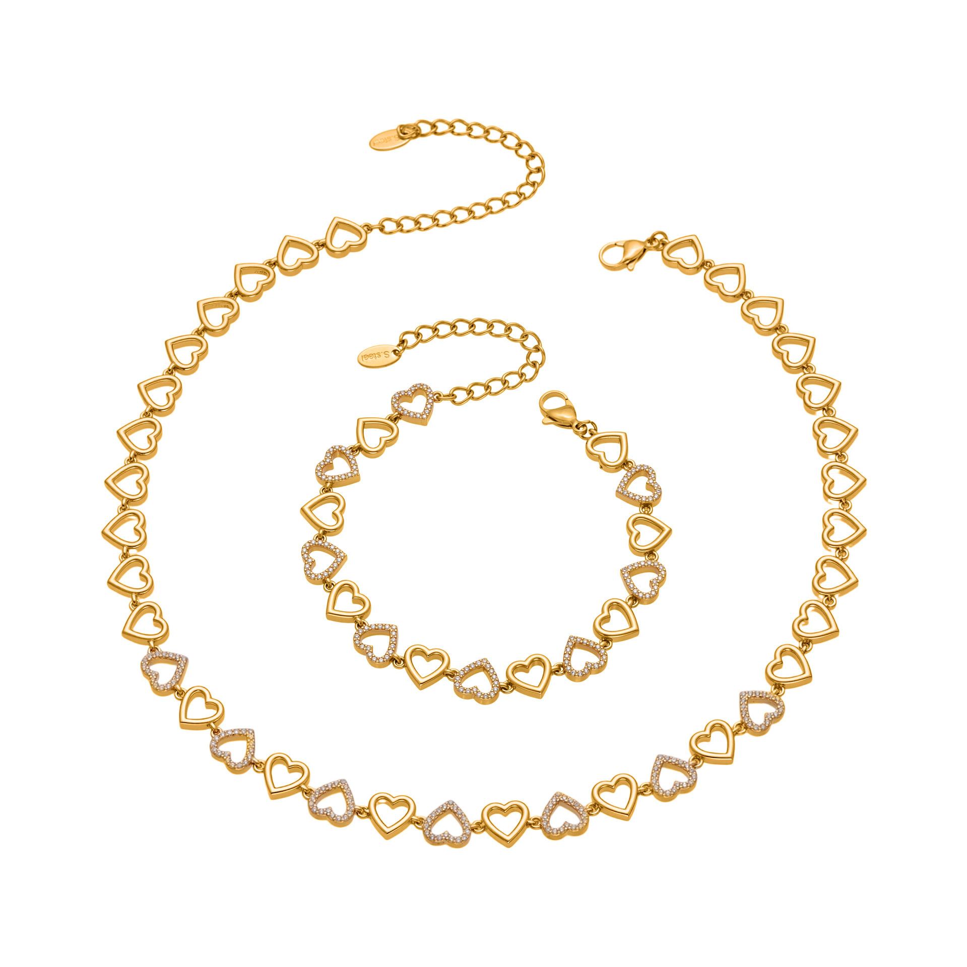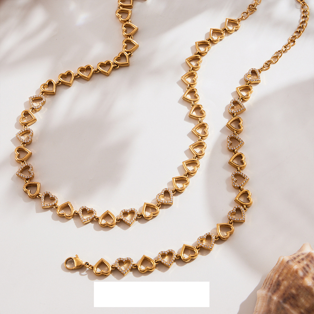 Cubic Zirconia Micro Pave Ensembles de bijoux en acier inoxydable, Acier inoxydable 304, Bracelet & collier, Placage de couleur d'or, bijoux de mode & pavé de micro zircon, plus de couleurs à choisir, Vendu par PC