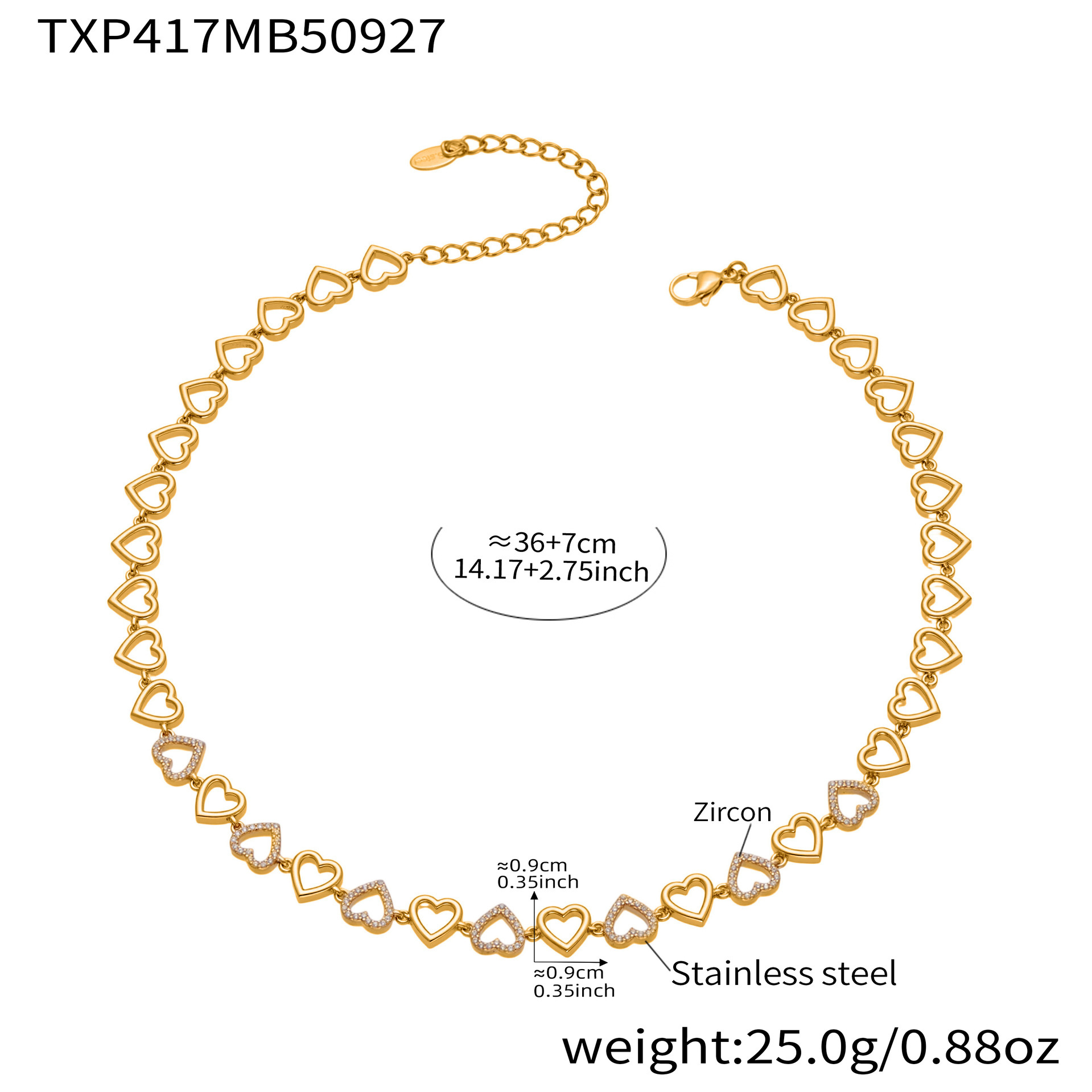 Cubic Zirconia Micro Pave Ensembles de bijoux en acier inoxydable, boucle d'oreille & collier, avec 2lnch chaînes de rallonge, coeur, Placage de couleur d'or, chaîne ovale & avec zircone cubique   Environ 17 pouce, Vendu par fixé
