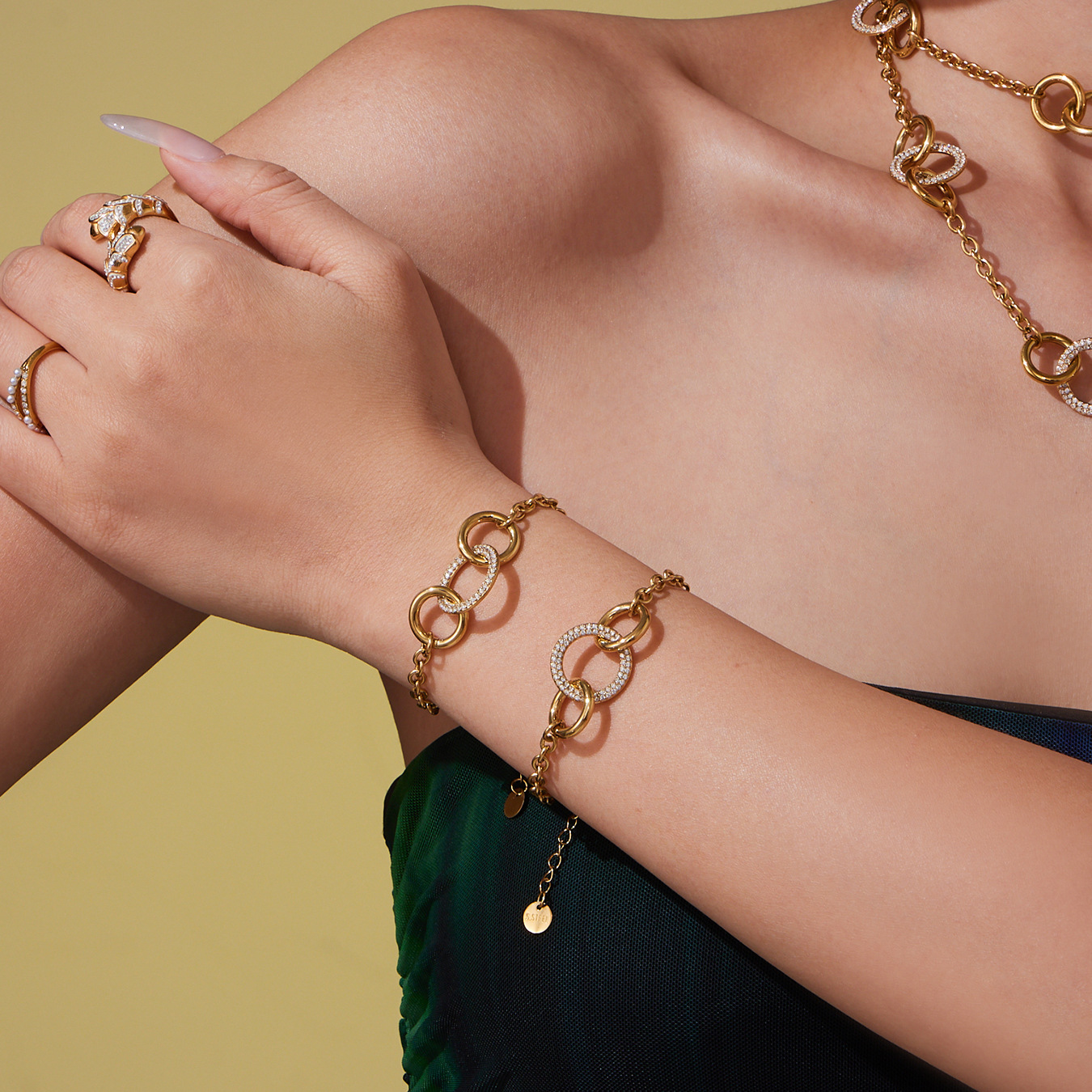 Cubic Zirconia Micro Pave Ensembles de bijoux en acier inoxydable, Acier inoxydable 304, Bracelet & collier, Placage de couleur d'or, bijoux de mode & pavé de micro zircon, plus de couleurs à choisir, Vendu par PC