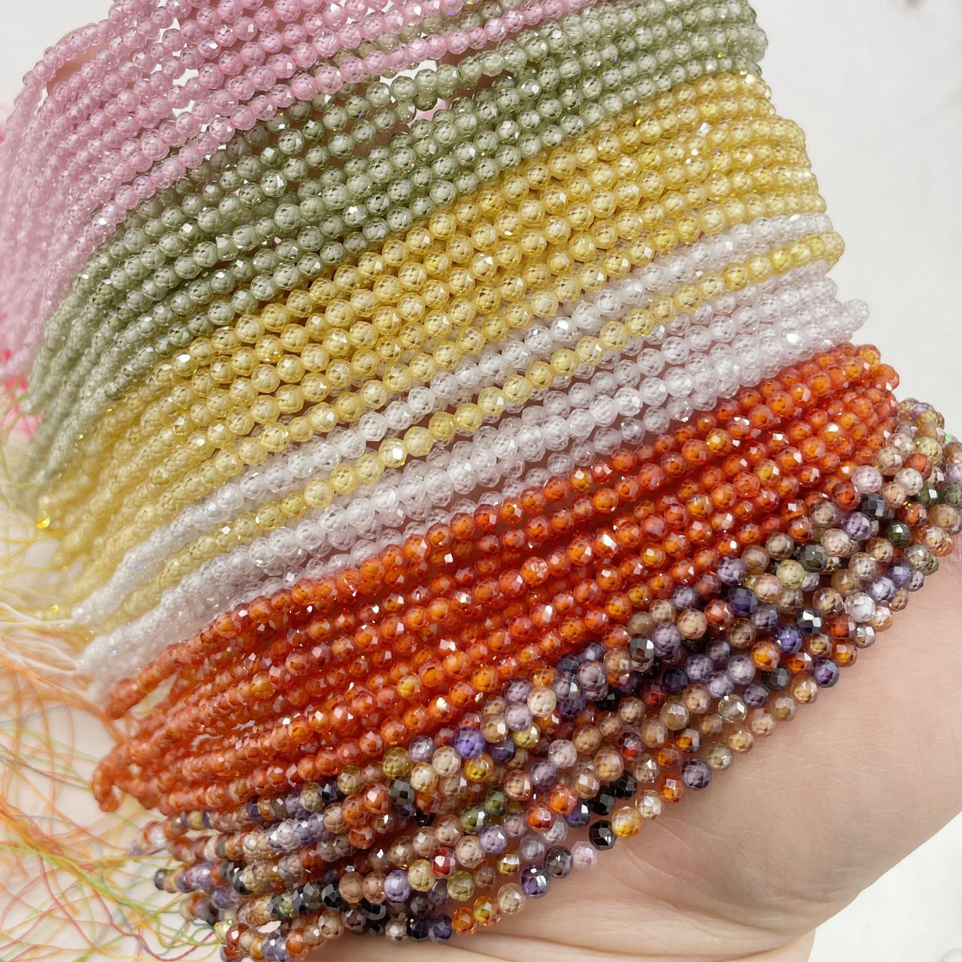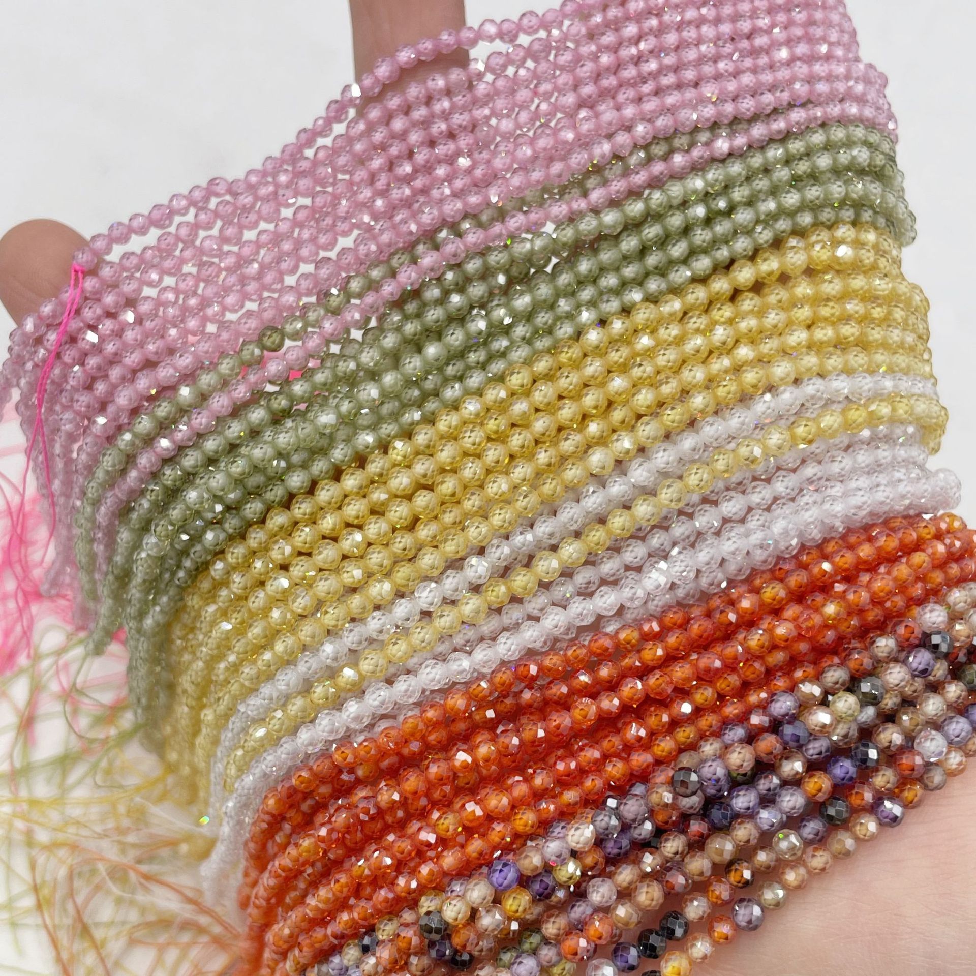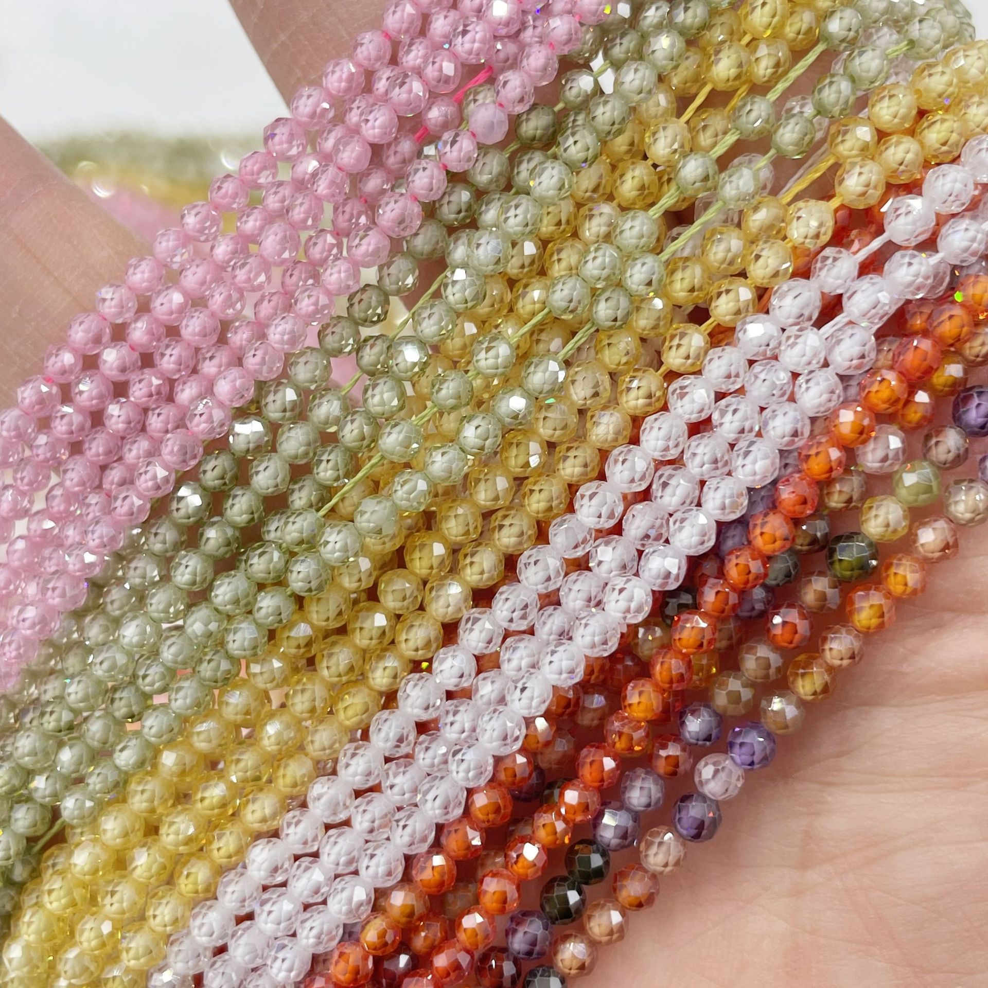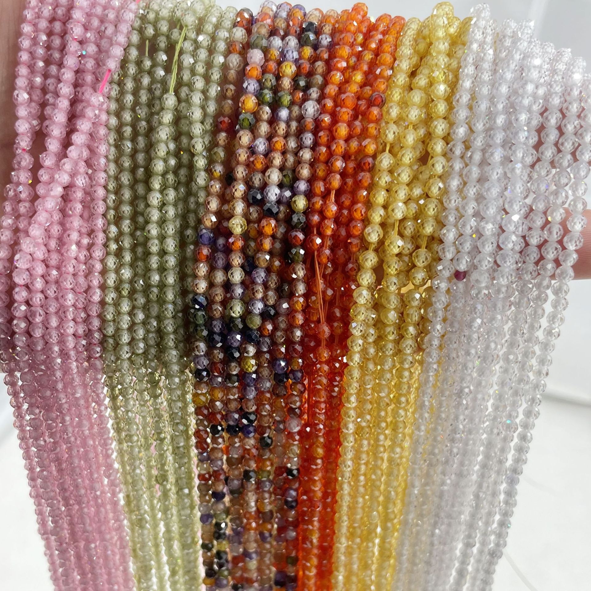 Cubic Zirconia bijoux perles, zircon cubique, Rond, DIY, plus de couleurs à choisir, 3mm, Longueur:Environ 38 cm, Vendu par brin