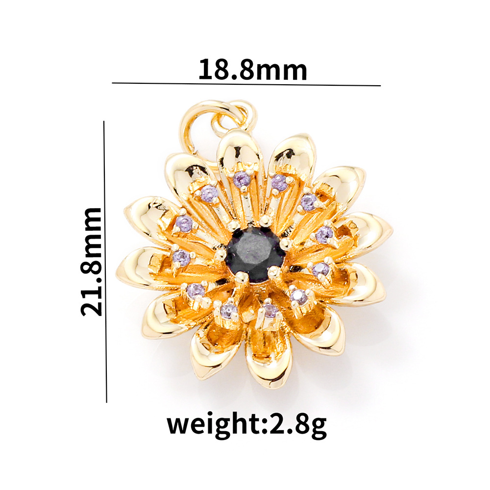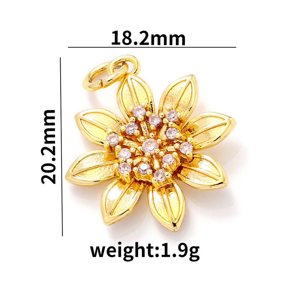 Cubique Pendentif en laiton zircon pavent, fleur, Placage de couleur d'or, bijoux de mode & DIY & pavé de micro zircon, plus de couleurs à choisir Vendu par PC