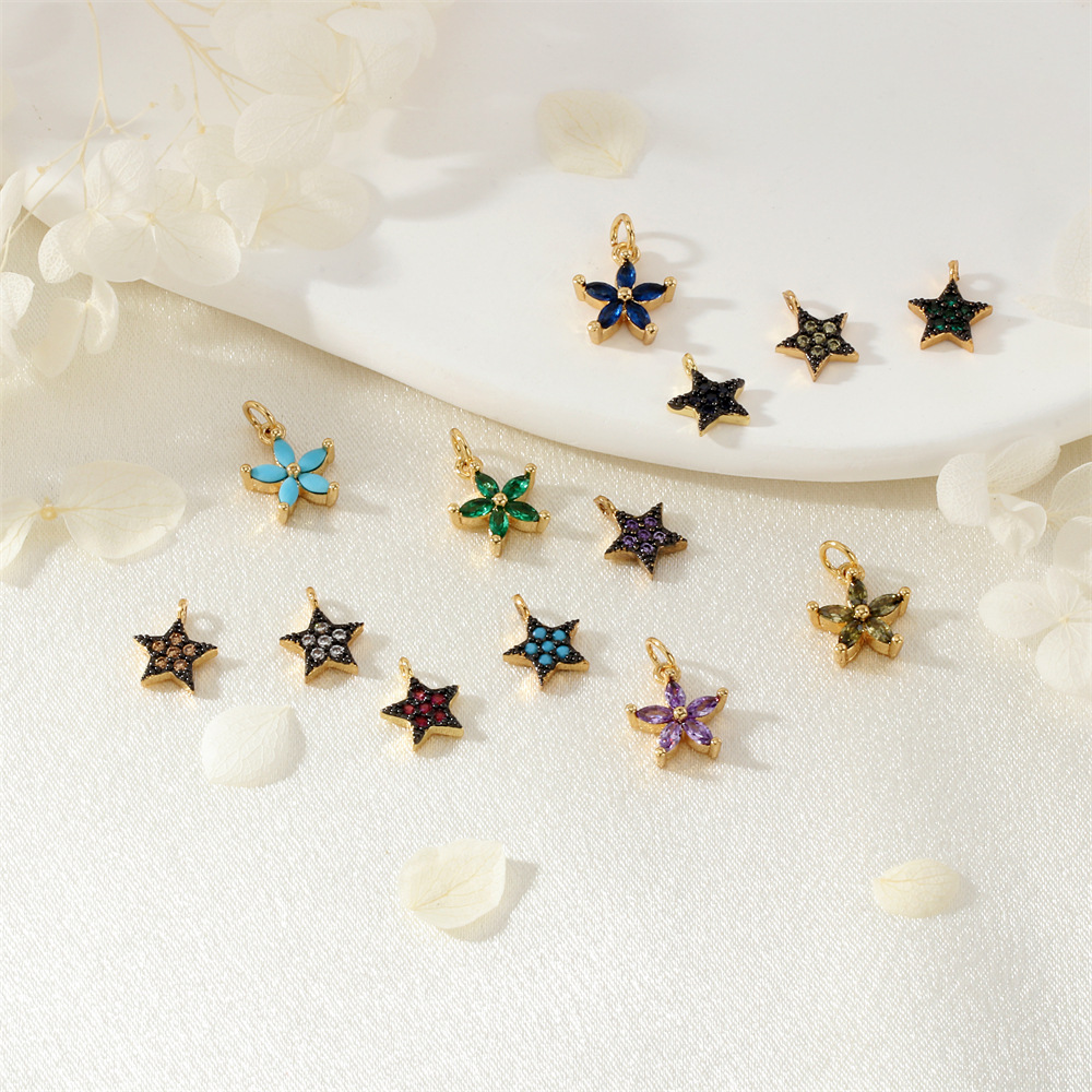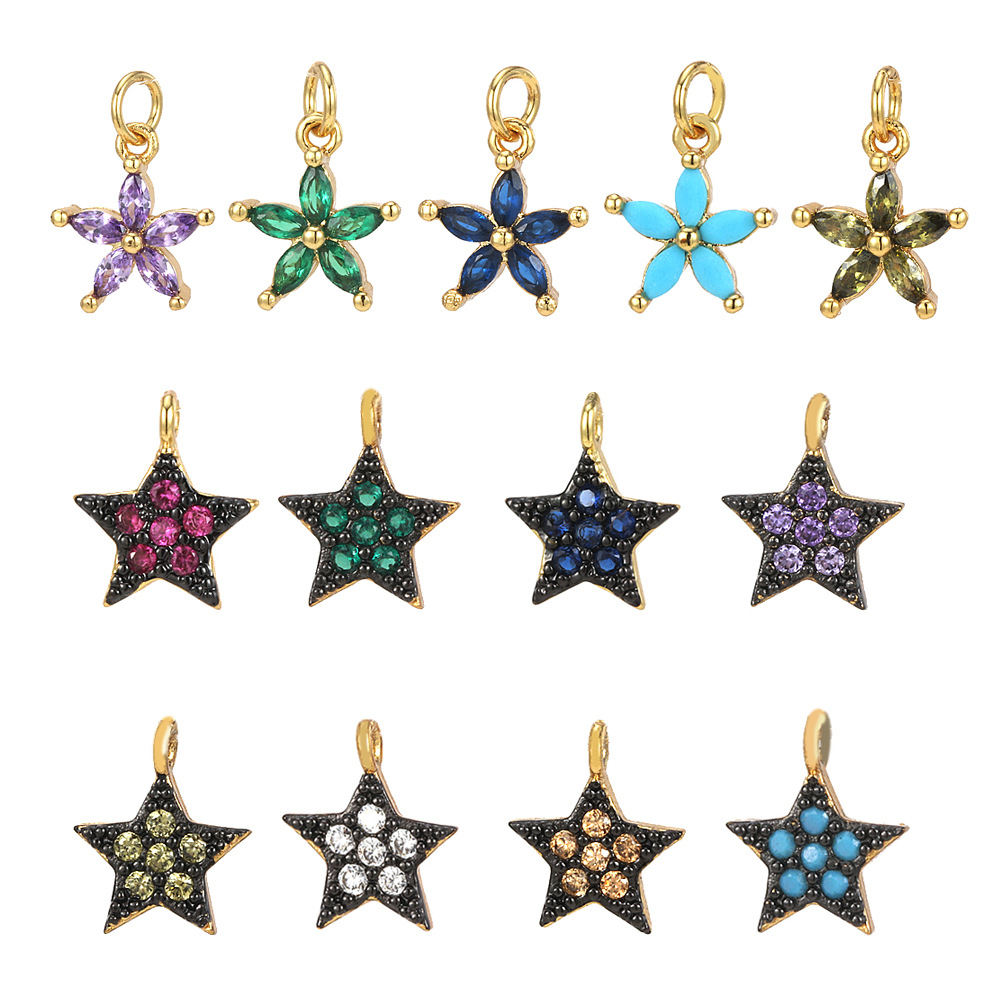 Cubique Pendentif en laiton zircon pavent, étoile, Placage de couleur d'or, DIY & styles différents pour le choix & pavé de micro zircon, plus de couleurs à choisir, Vendu par PC