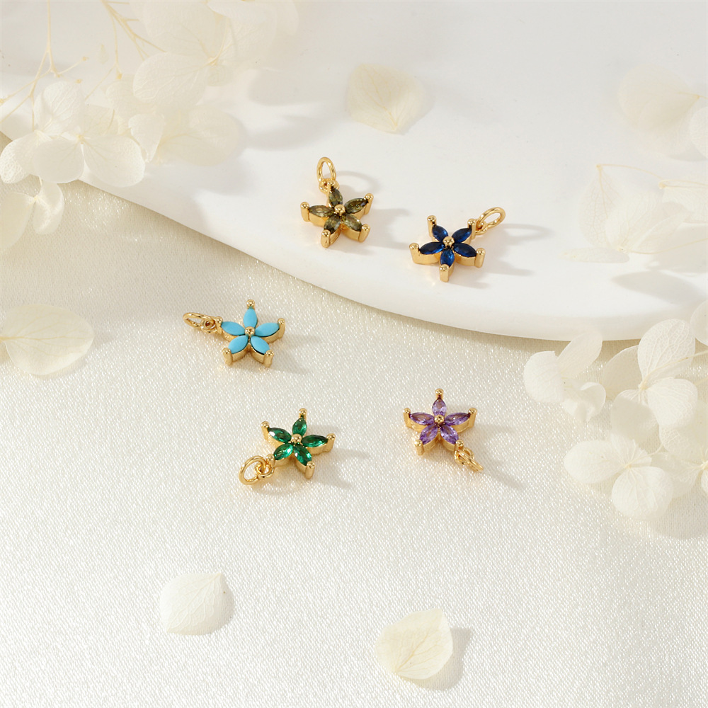 Cubique Pendentif en laiton zircon pavent, fleur, Placage de couleur d'or, bijoux de mode & DIY & pavé de micro zircon, plus de couleurs à choisir Vendu par PC
