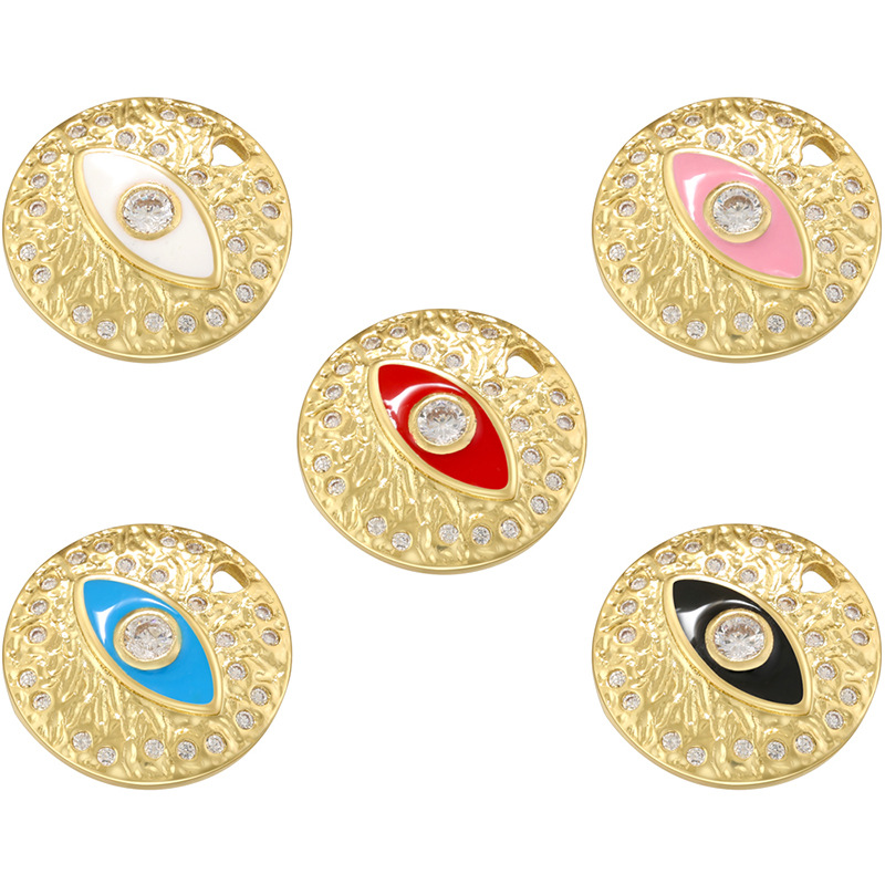 Cubique Pendentif en laiton zircon pavent, Rond, Placage de couleur d'or, DIY & pavé de micro zircon & émail, plus de couleurs à choisir, Vendu par PC