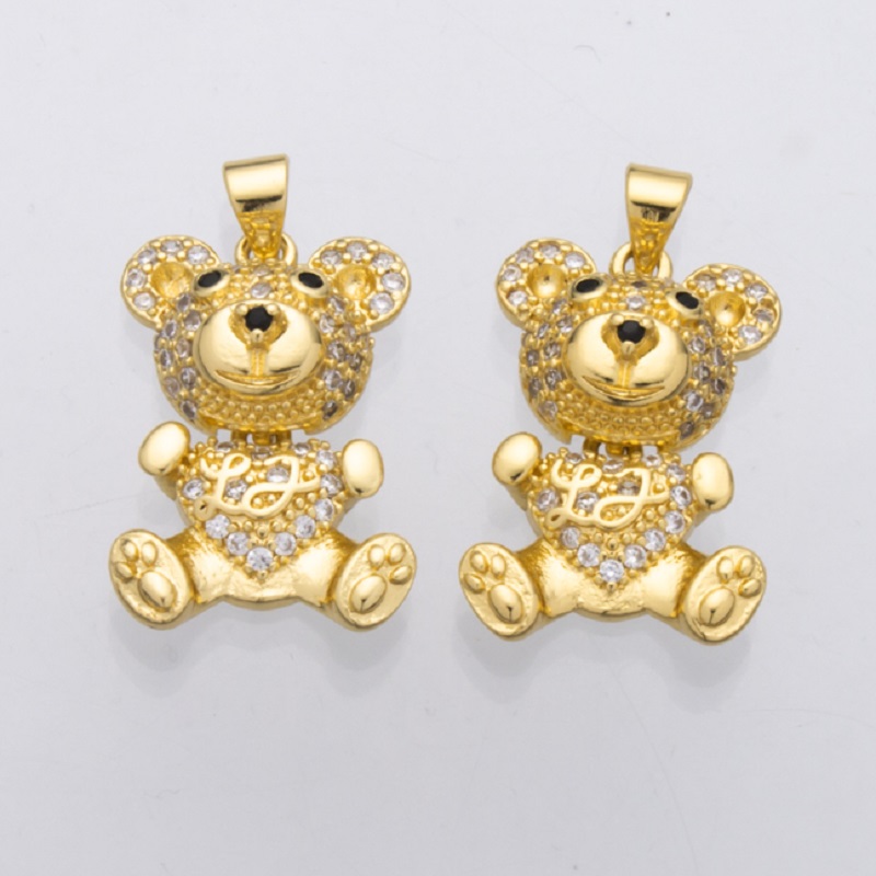 Cubique Pendentif en laiton zircon pavent, ours, Placage de couleur d'or, DIY & pavé de micro zircon, 28x16x8mm, Vendu par PC