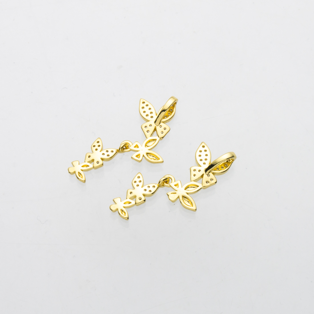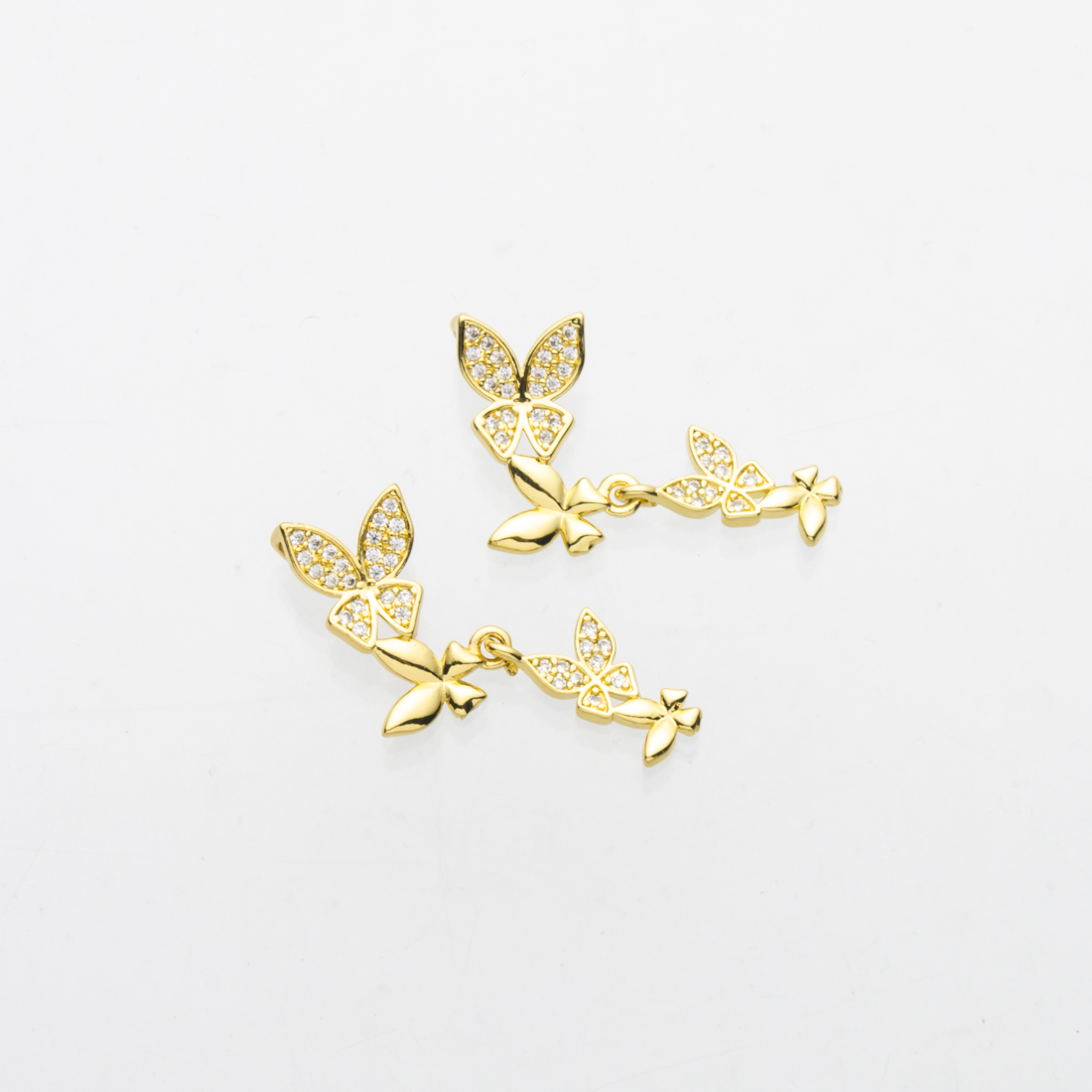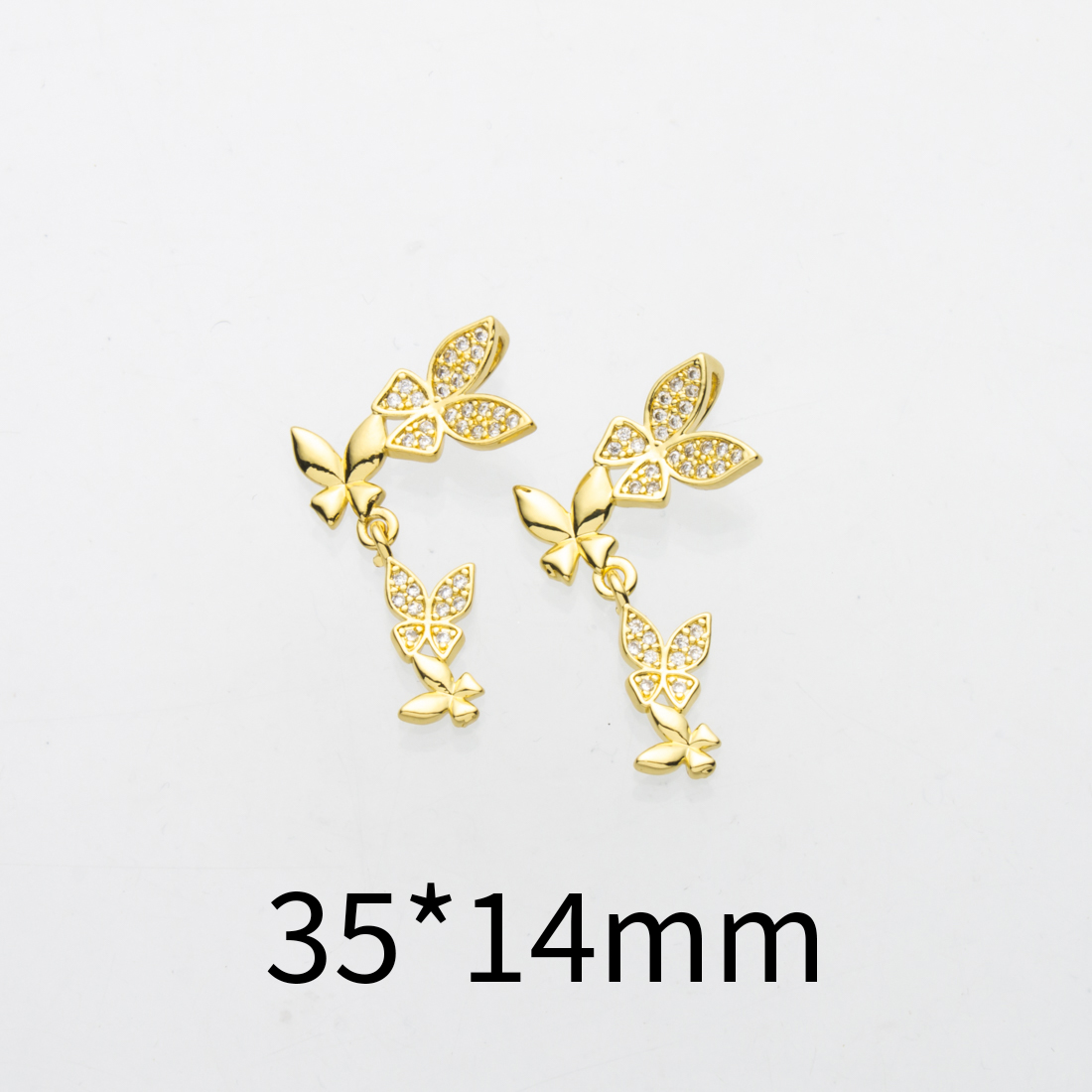 Cubique Pendentif en laiton zircon pavent, papillon, Placage de couleur d'or, DIY & pavé de micro zircon, 35x14x5mm, Vendu par PC