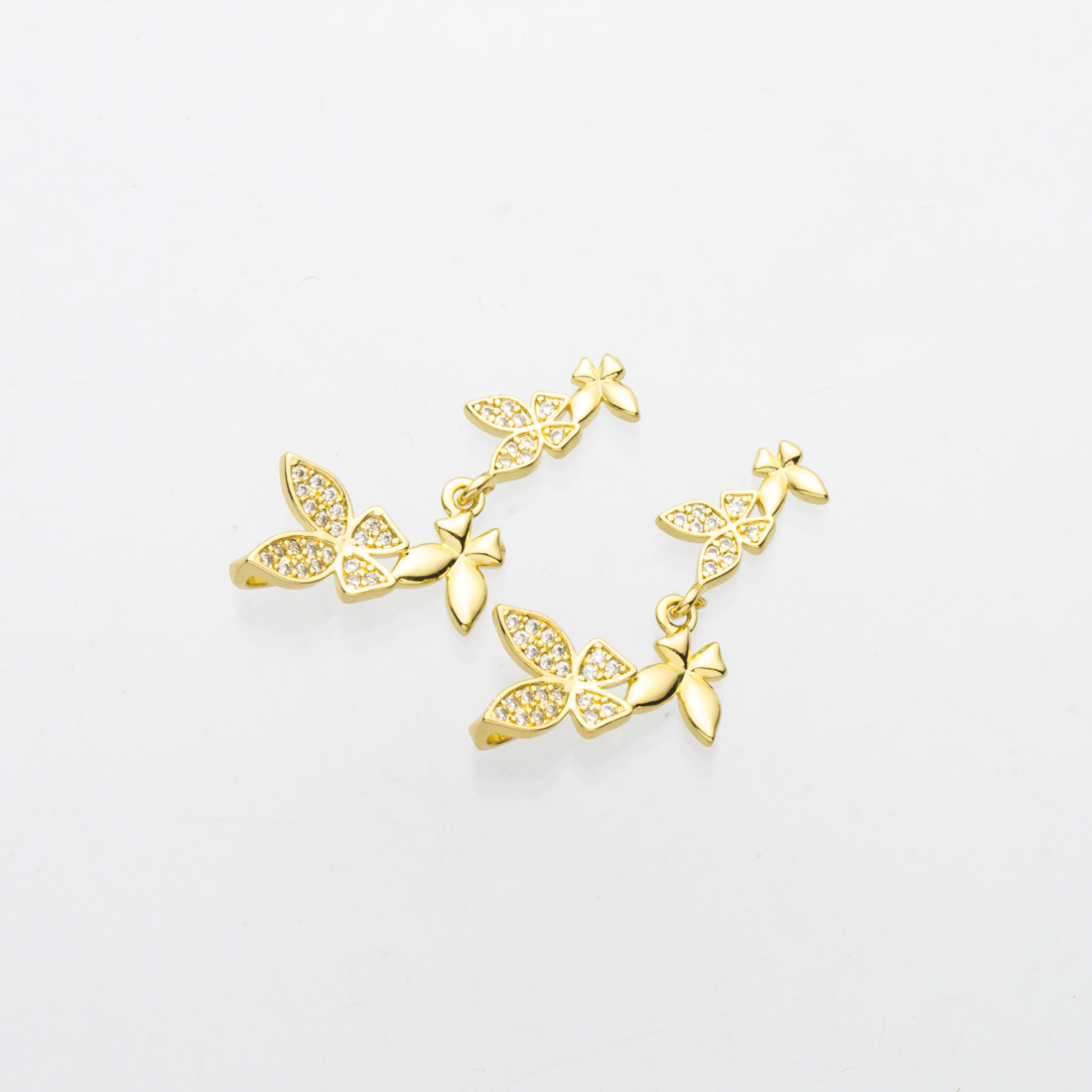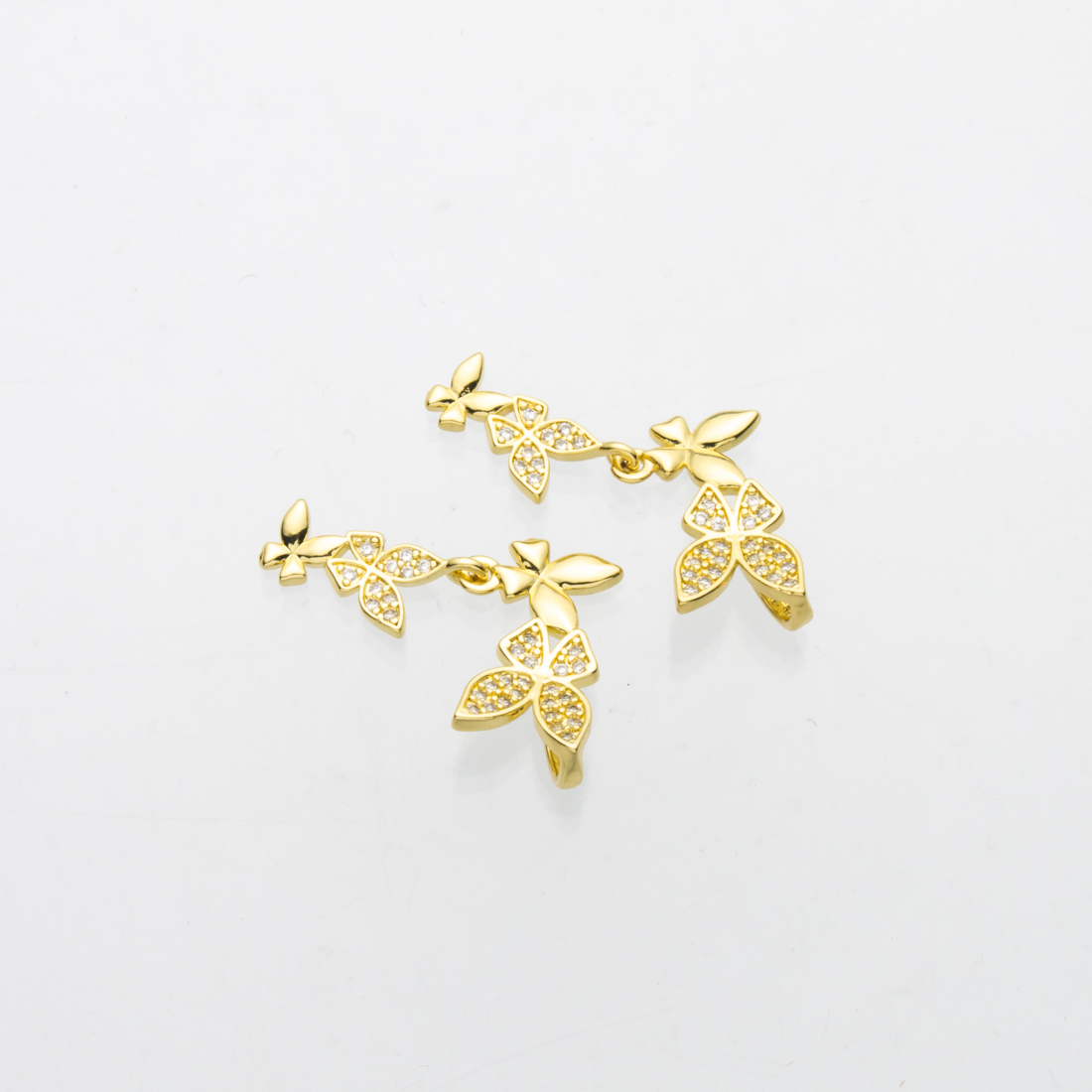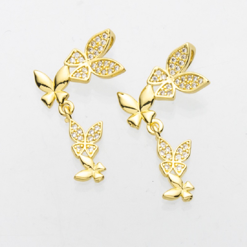 Cubique Pendentif en laiton zircon pavent, papillon, Placage de couleur d'or, DIY & pavé de micro zircon, 35x14x5mm, Vendu par PC
