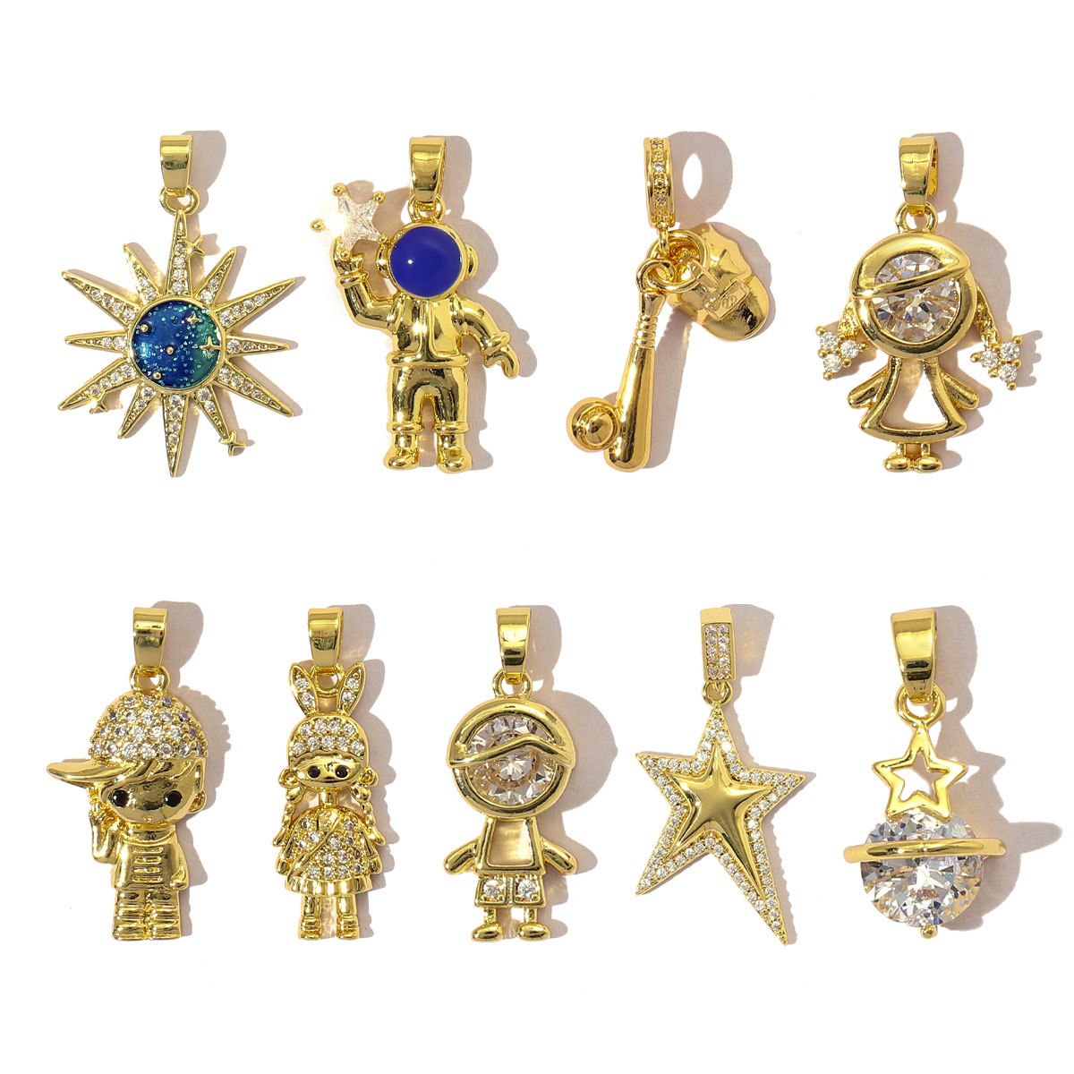 Cubique Pendentif en laiton zircon pavent, styles différents pour le choix & pavé de micro zircon, doré, Vendu par PC