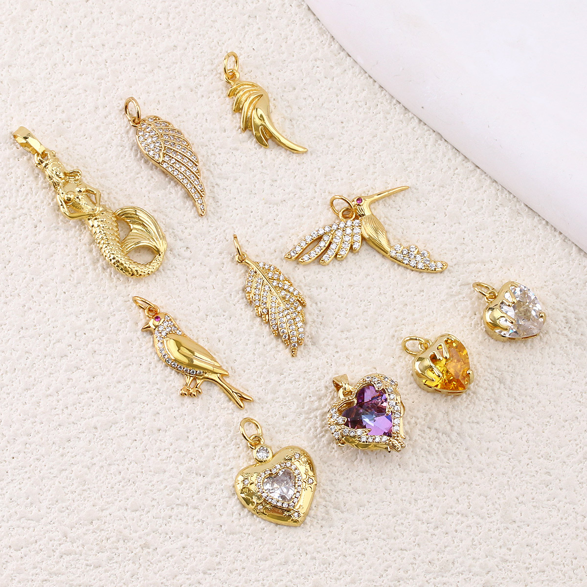 Cubique Pendentif en laiton zircon pavent, styles différents pour le choix & pavé de micro zircon, doré, Vendu par PC
