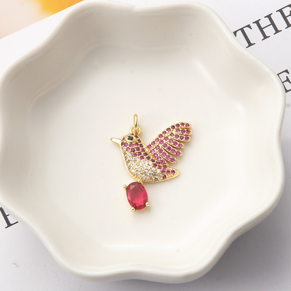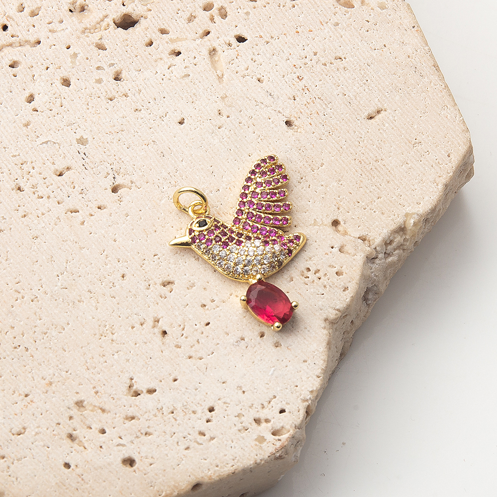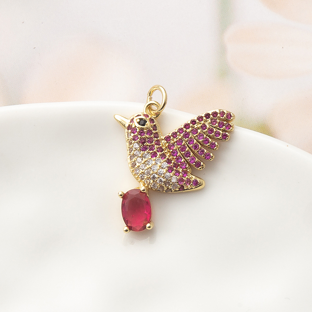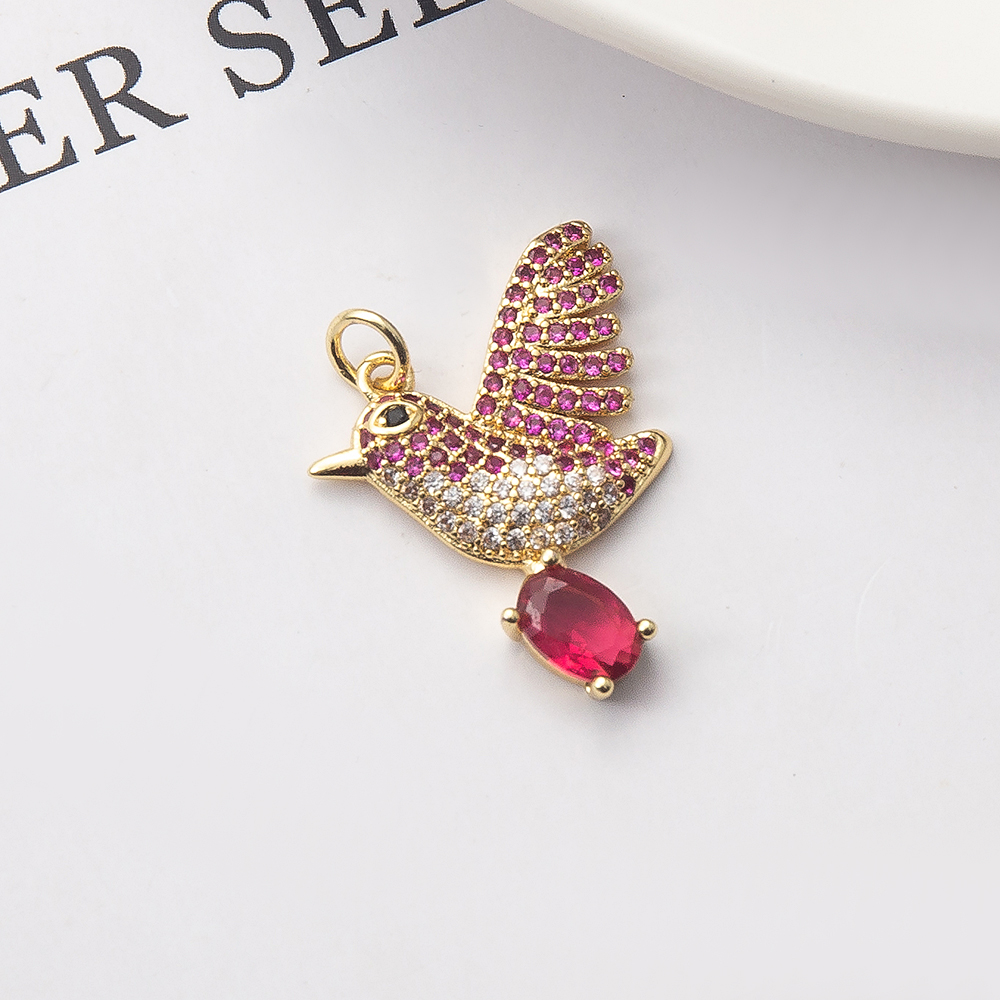 Cubique Pendentif en laiton zircon pavent, oiseau, Placage de couleur d'or, DIY & pavé de micro zircon, 18x4x22mm, Vendu par PC
