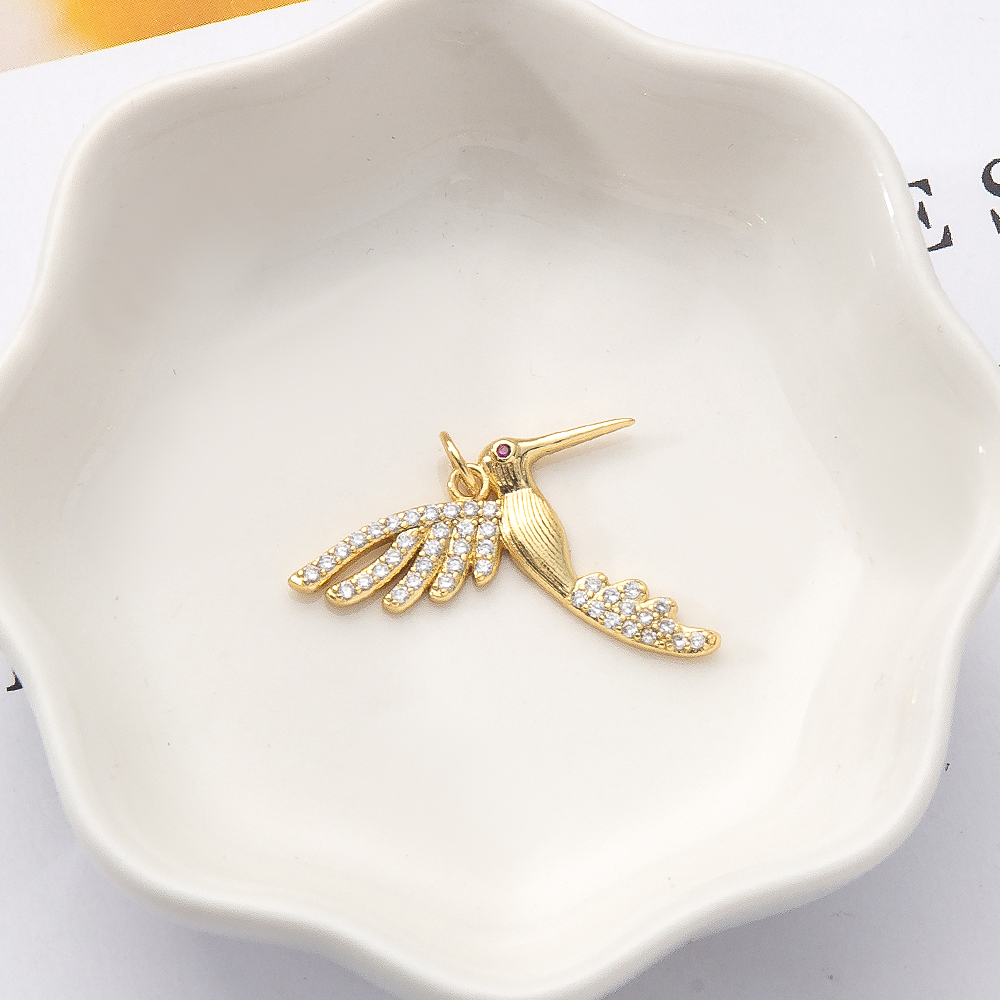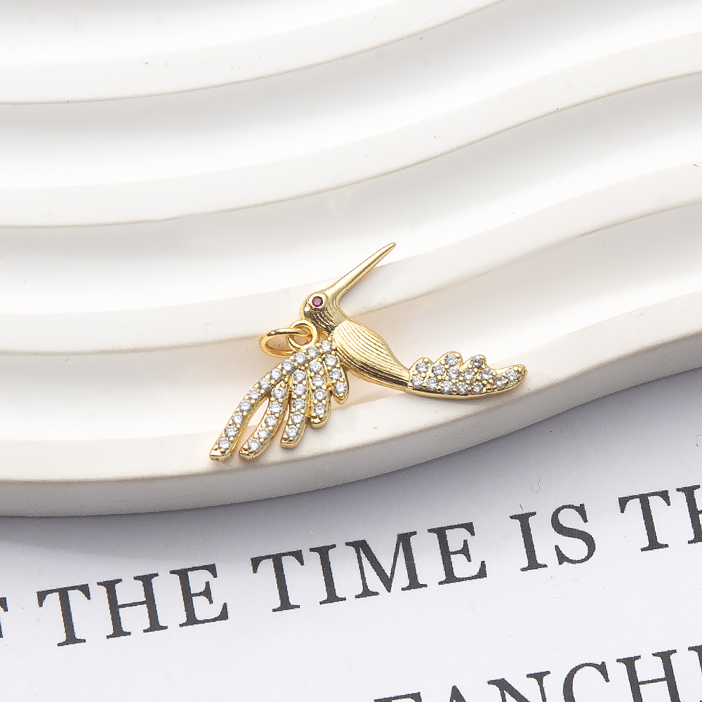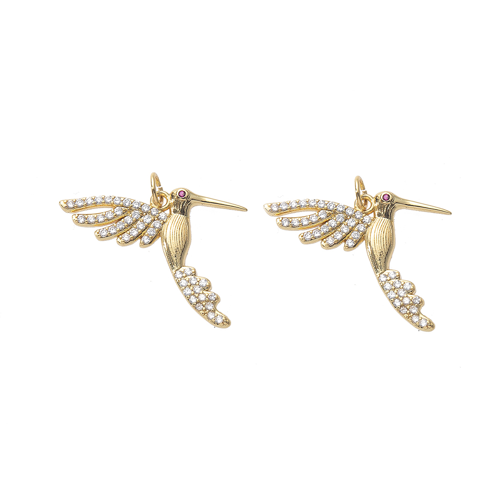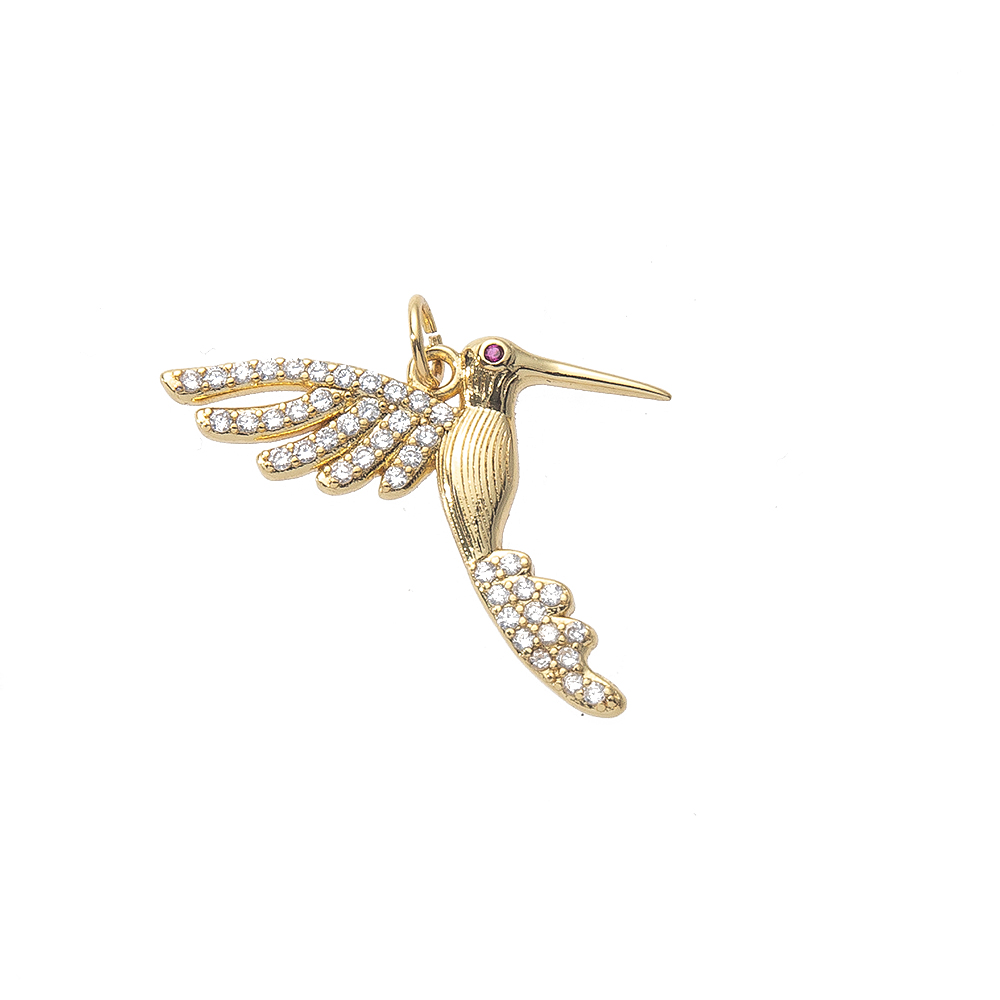 Cubique Pendentif en laiton zircon pavent, oiseau, Placage de couleur d'or, DIY & pavé de micro zircon, 25x2x24mm, Vendu par PC