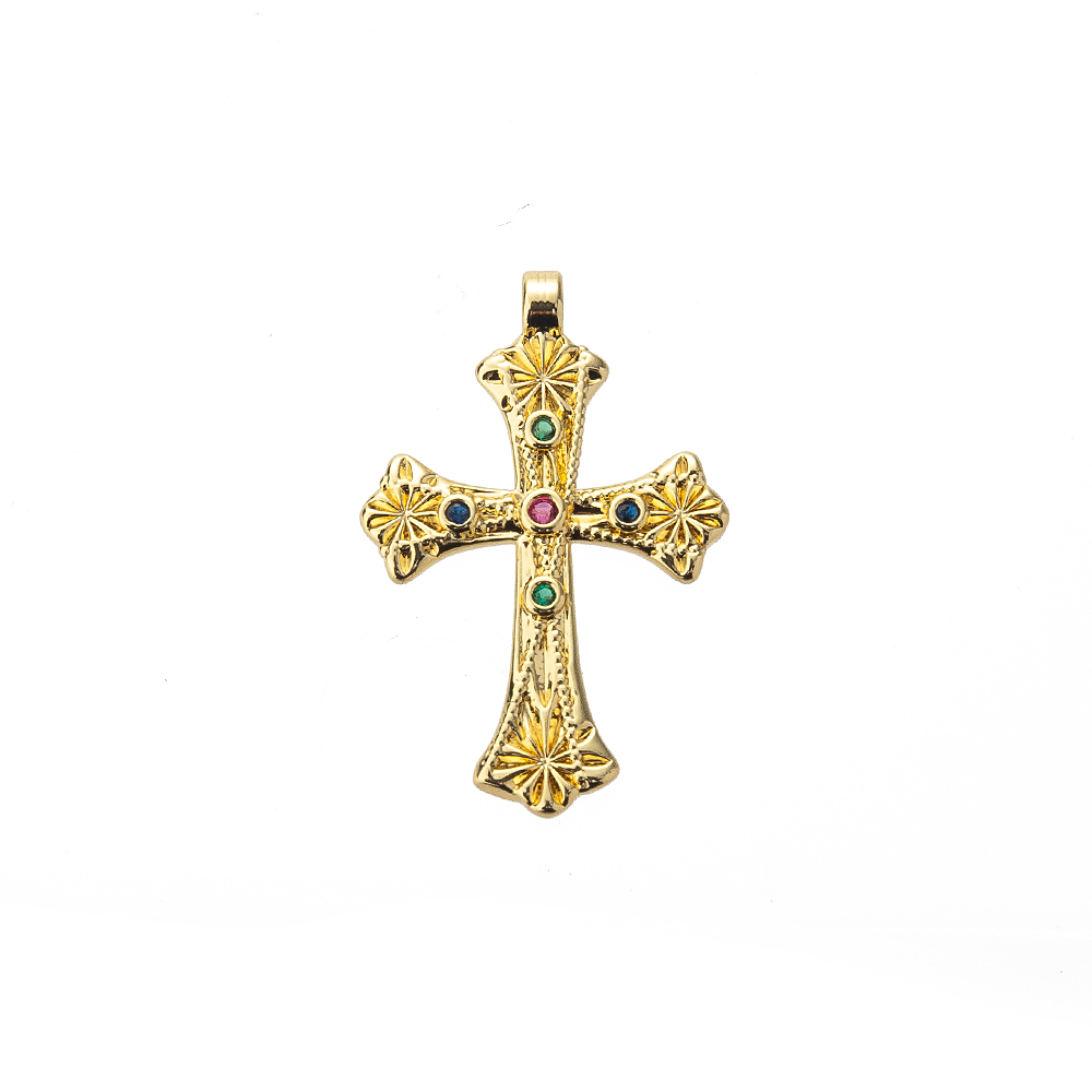 Cubique Pendentif en laiton zircon pavent, croix, Placage, pavé de micro zircon, plus de couleurs à choisir Environ 1mm, Vendu par PC