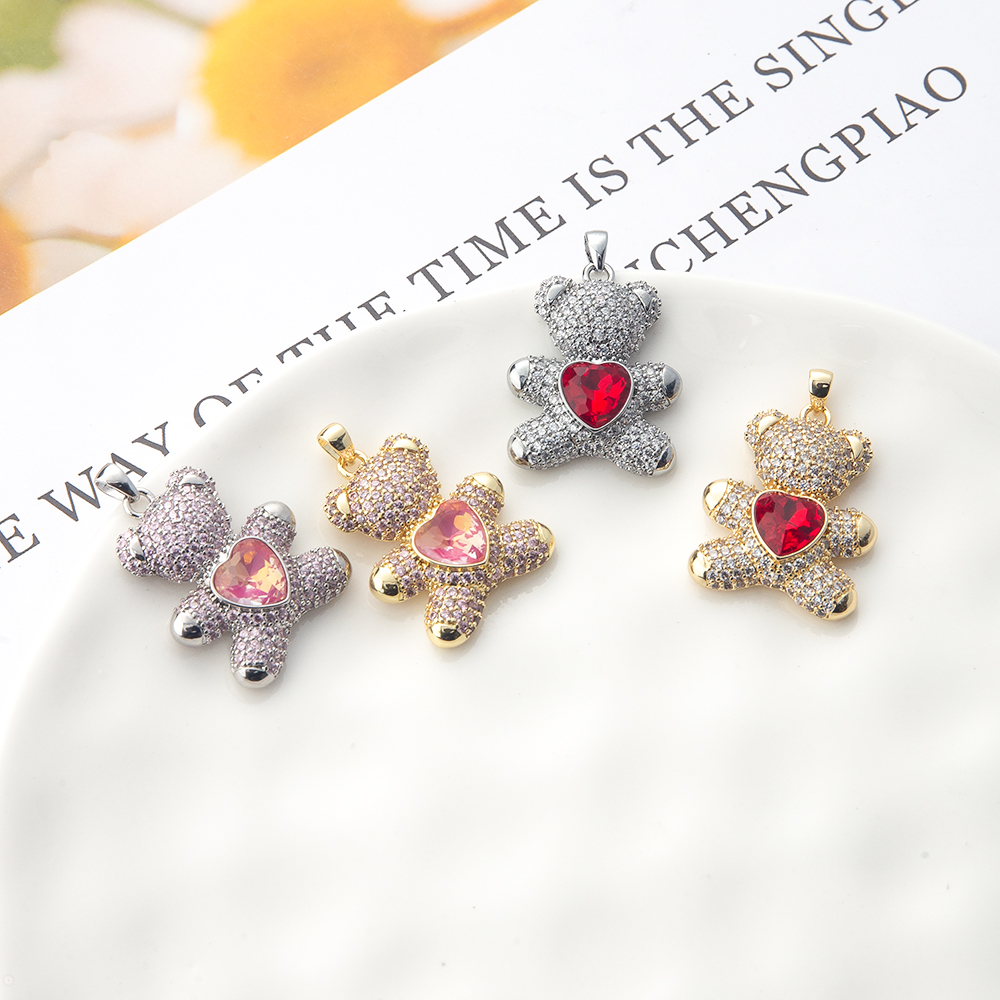 Cubique Pendentif en laiton zircon pavent, ours, Placage, DIY & pavé de micro zircon, plus de couleurs à choisir, 21x7x31mm, Vendu par sol