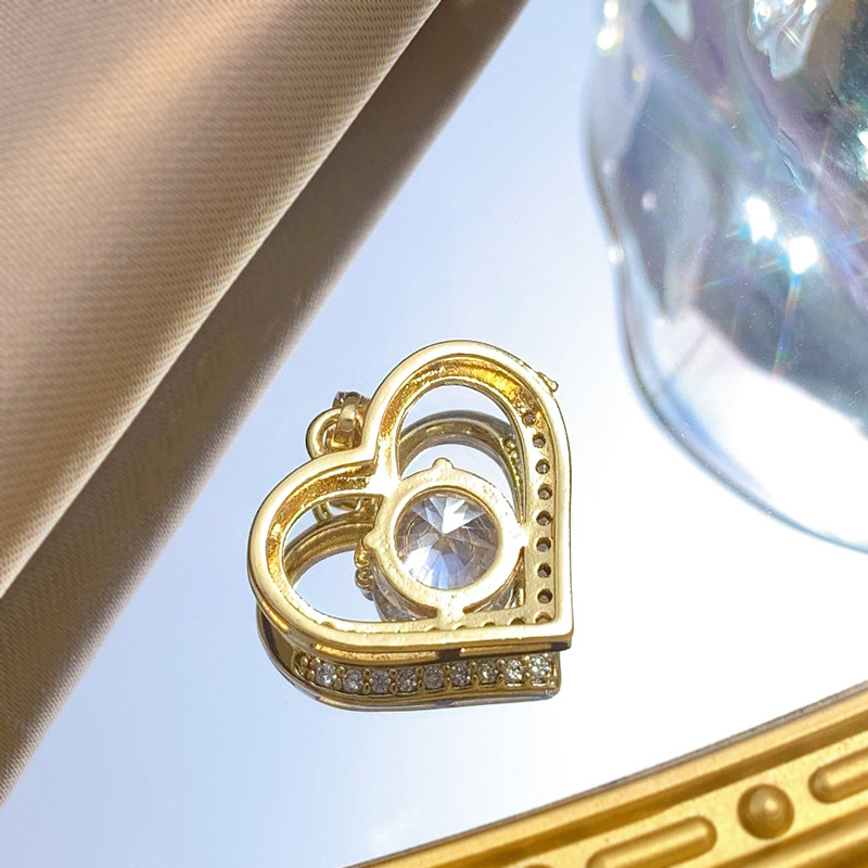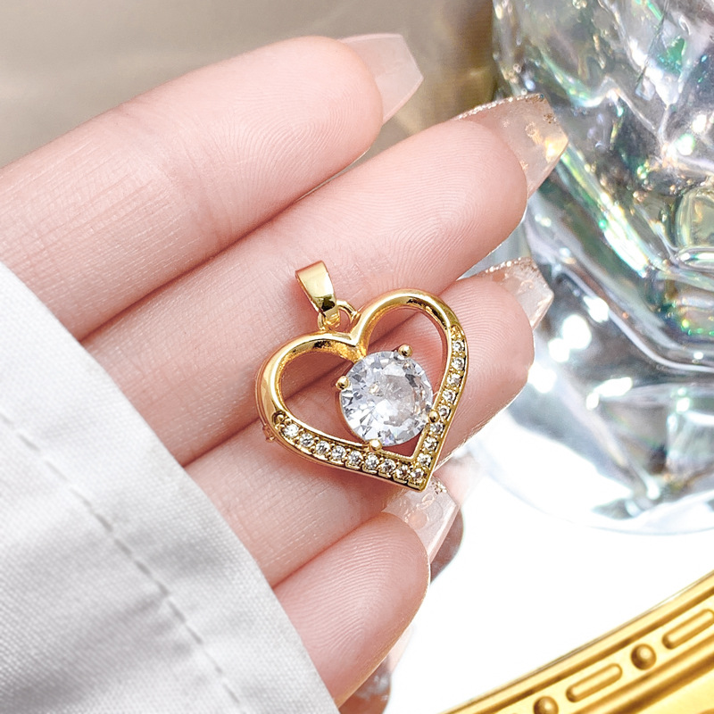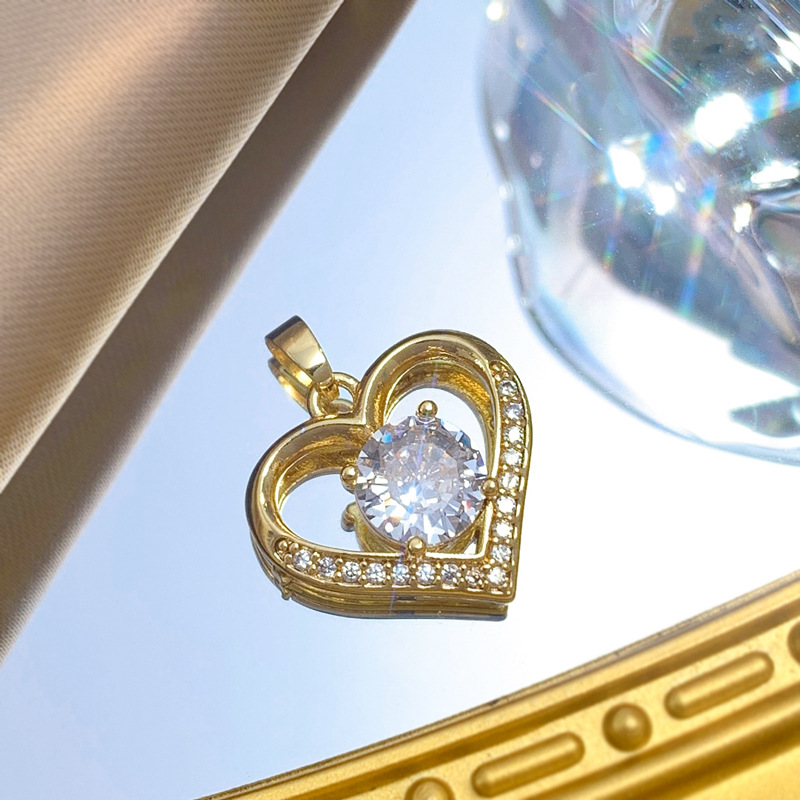 Cubique Pendentif en laiton zircon pavent, coeur, Plaqué d'or, DIY & pavé de micro zircon & creux, Vendu par PC