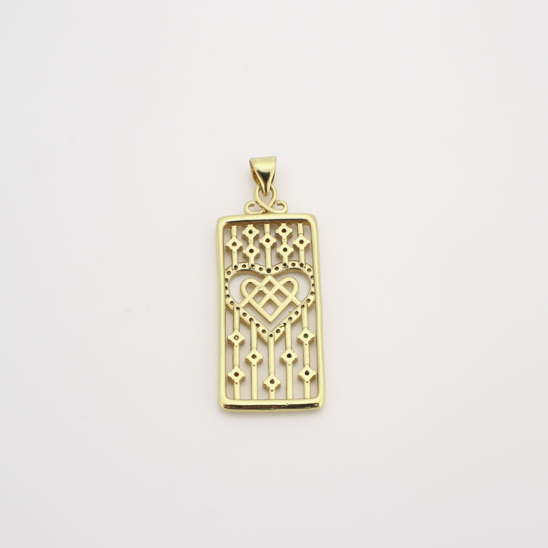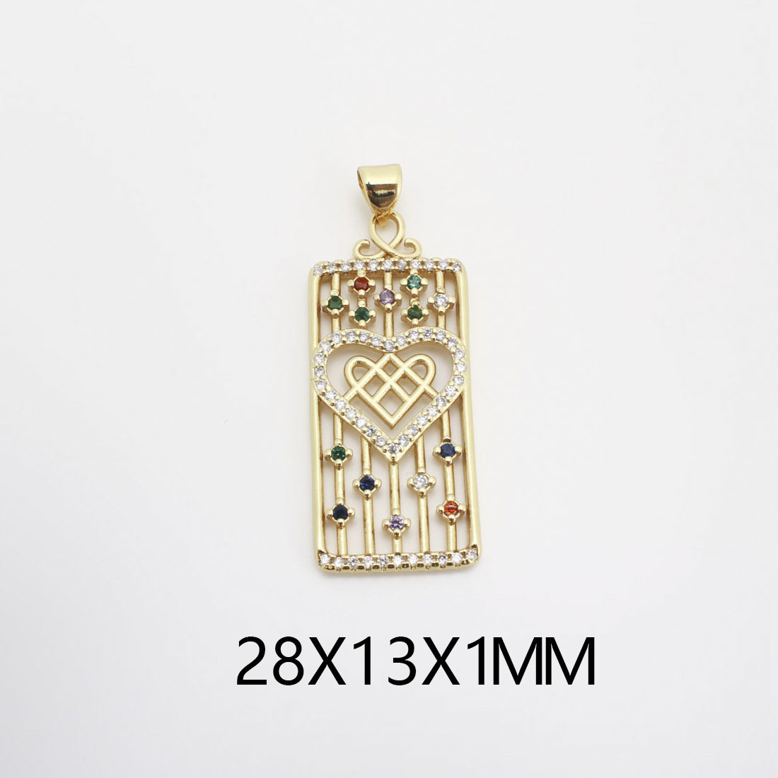 Cubique Pendentif en laiton zircon pavent, rectangle, DIY & pavé de micro zircon & creux, doré, 28x13x1mm, Vendu par PC