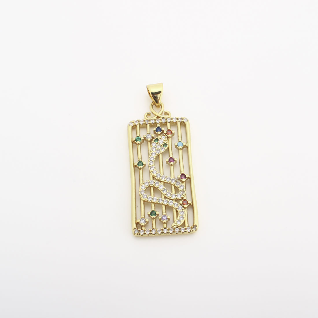 Cubique Pendentif en laiton zircon pavent, rectangle, DIY & pavé de micro zircon & creux, doré, 28x13x1mm, Vendu par PC