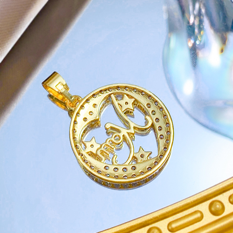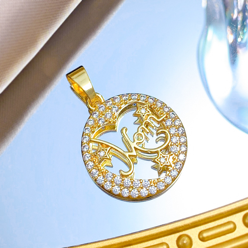 Cubique Pendentif en laiton zircon pavent, Rond, Plaqué d'or, DIY & pavé de micro zircon & creux, Vendu par PC