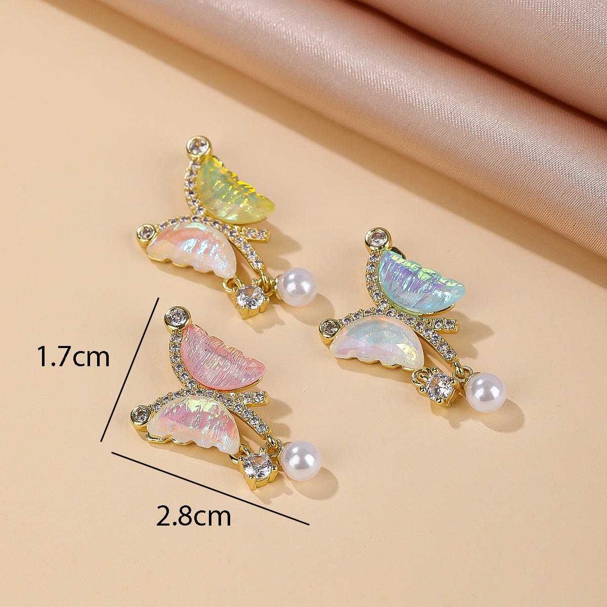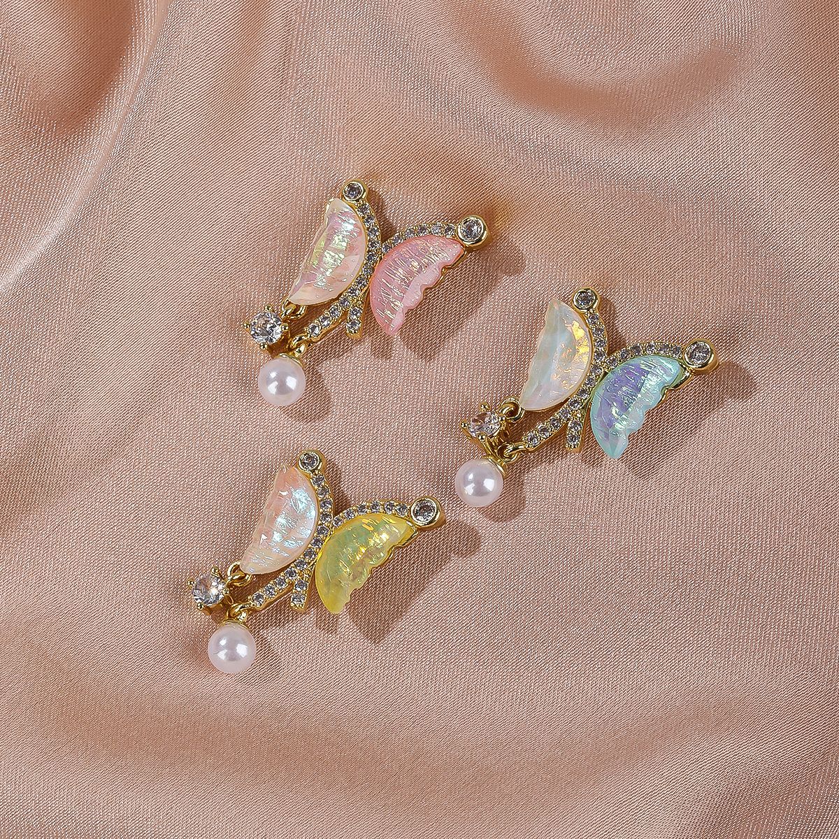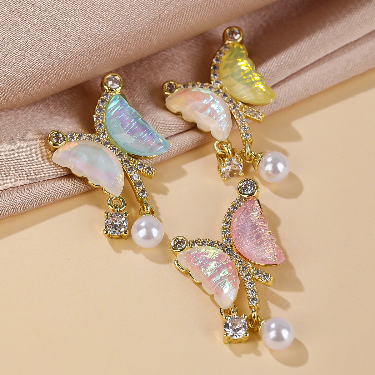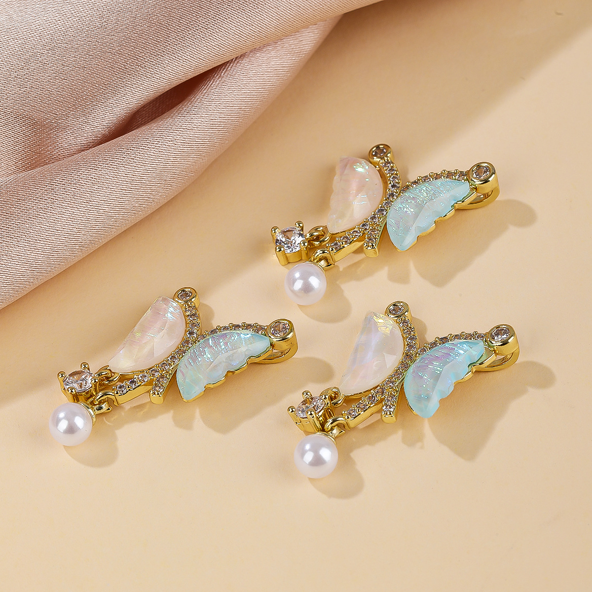 Cubique Pendentif en laiton zircon pavent, avec coquille & perle de plastique, papillon, Placage de couleur d'or, DIY, plus de couleurs à choisir, 17x28mm, Vendu par PC