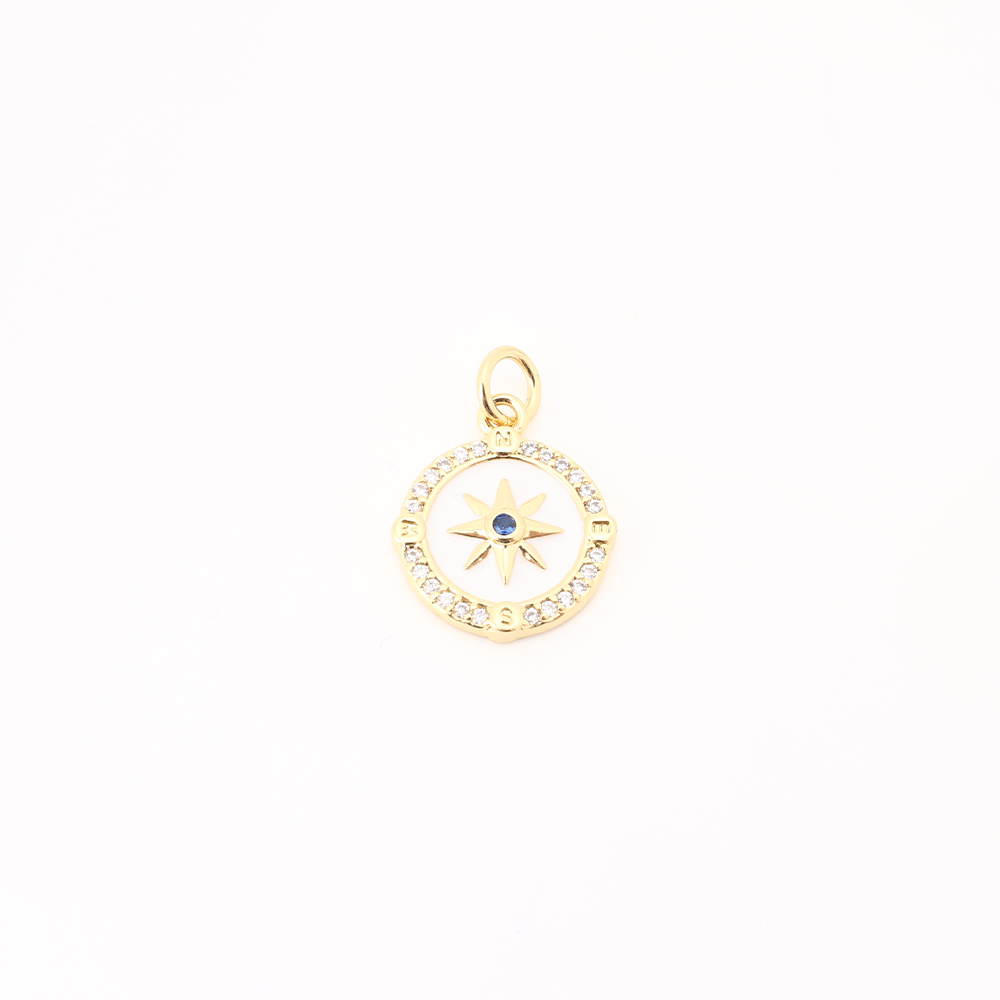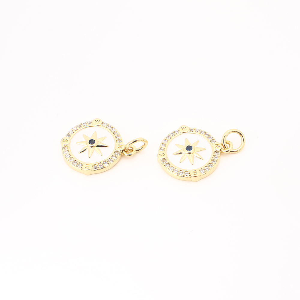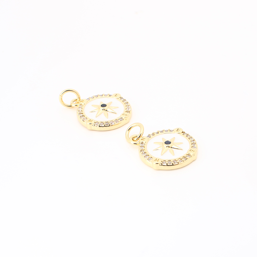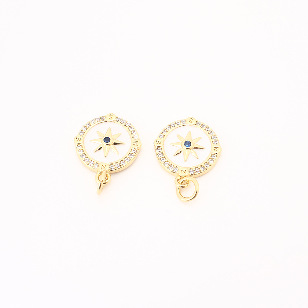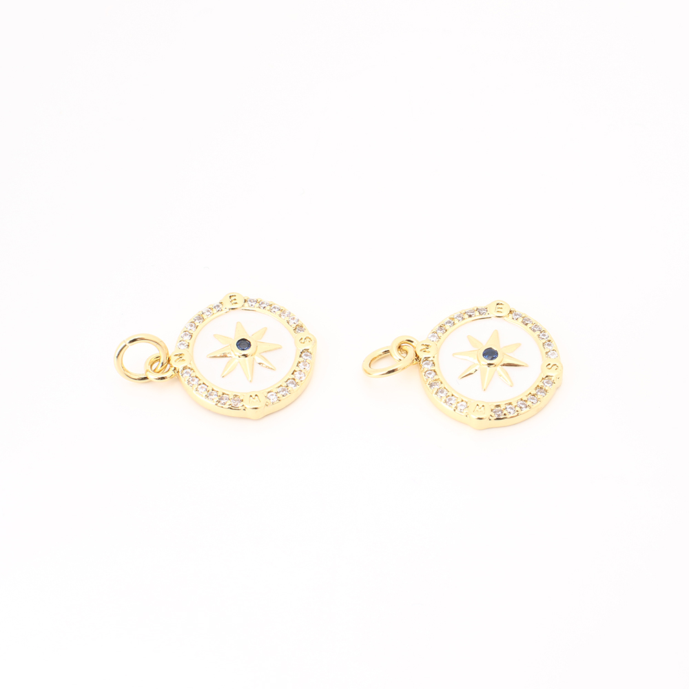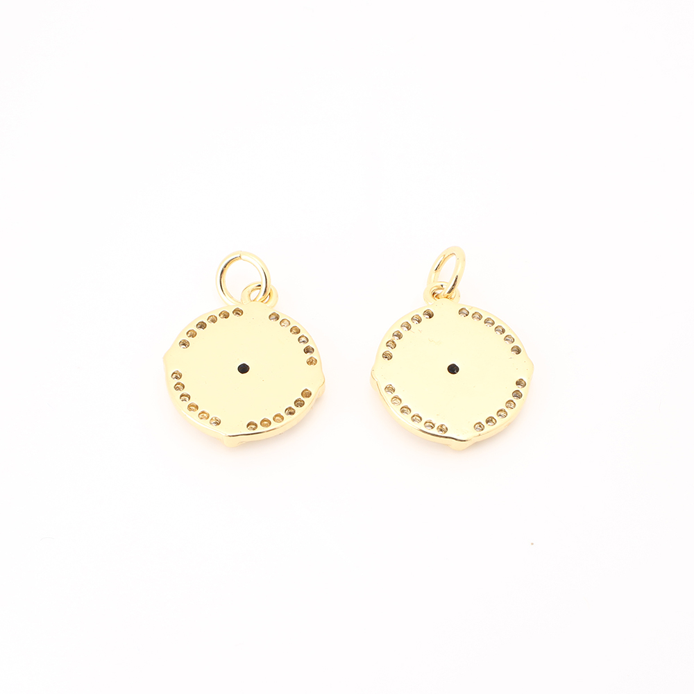 Cubique Pendentif en laiton zircon pavent, avec coquille, Rond, DIY & pavé de micro zircon, doré, 15x13x2mm, Vendu par PC
