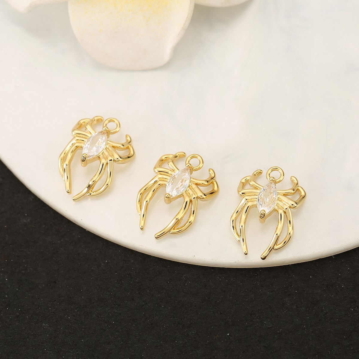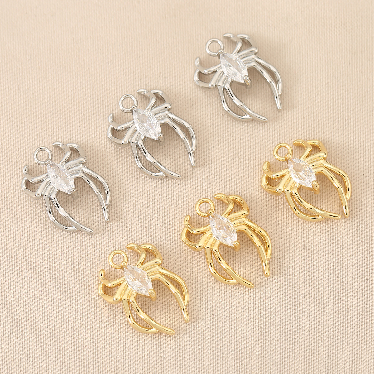 Cubique Pendentif en laiton zircon pavent, araignée, Placage de couleur d'or, DIY & pavé de micro zircon, couleurs mélangées, 10PC/sac, Vendu par sac