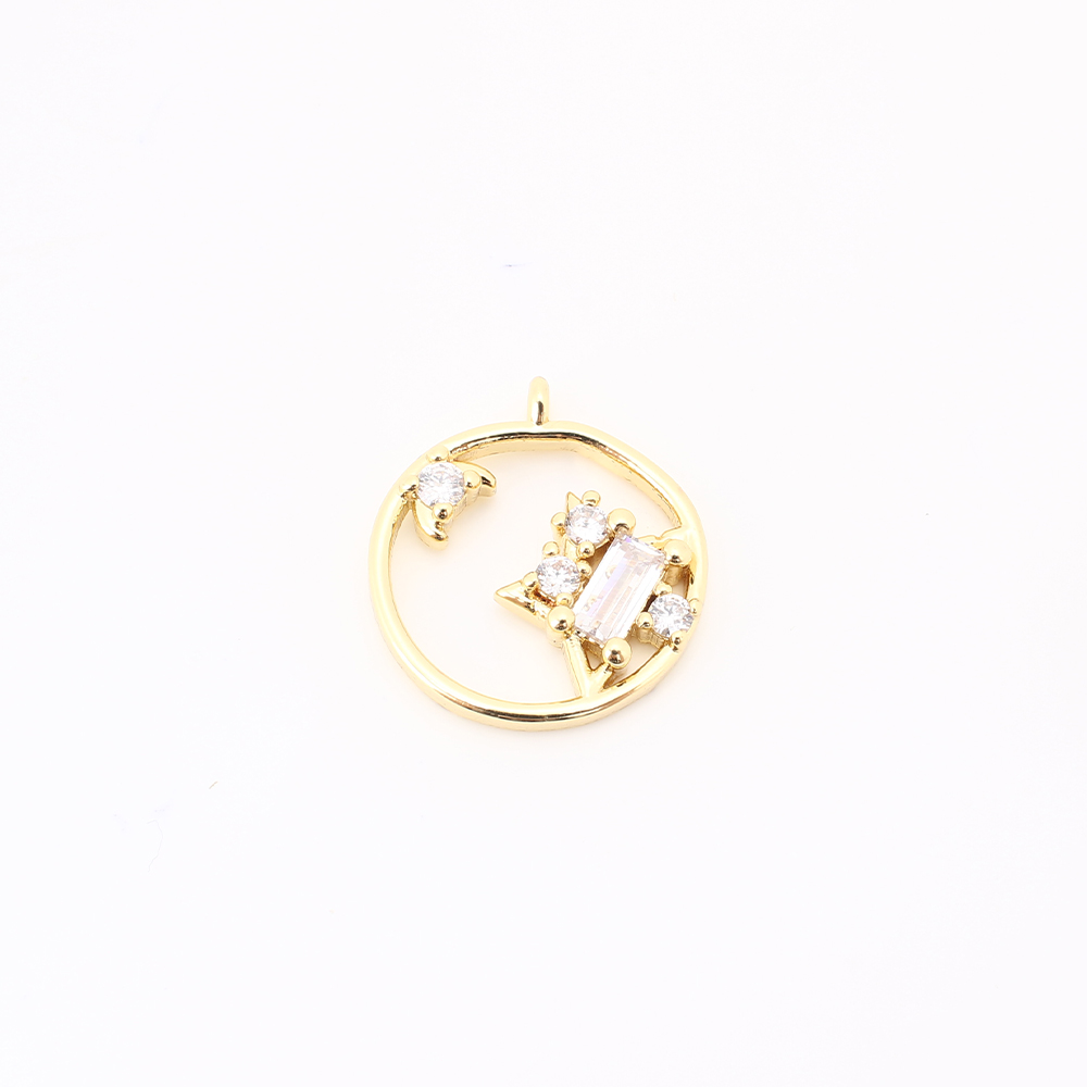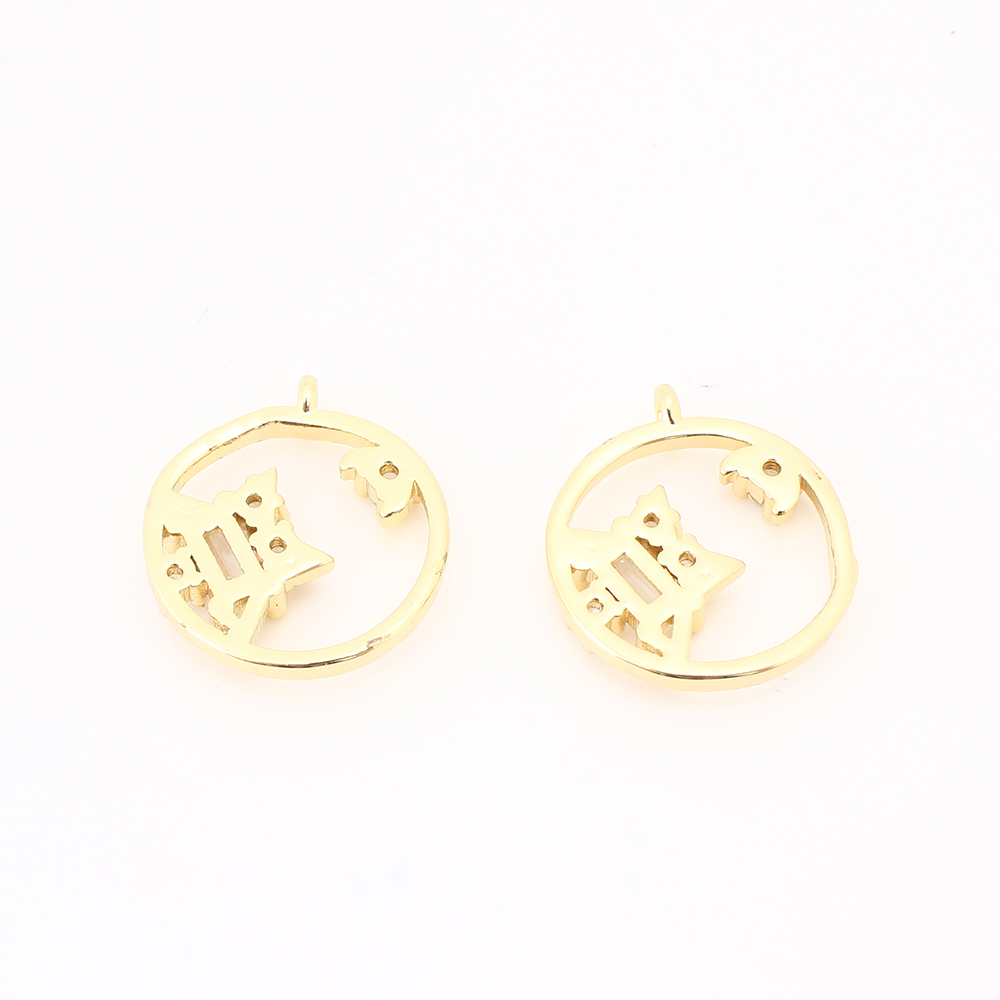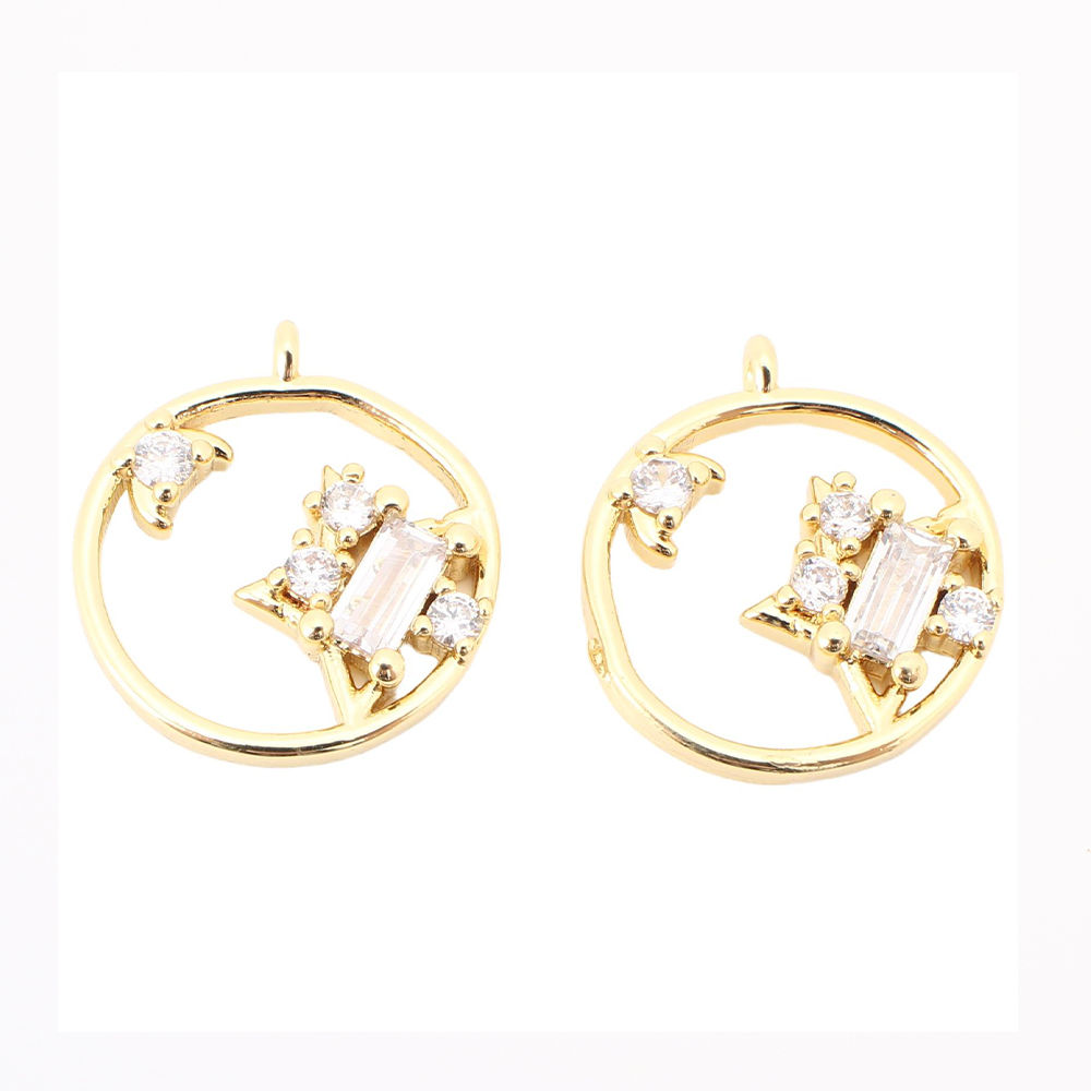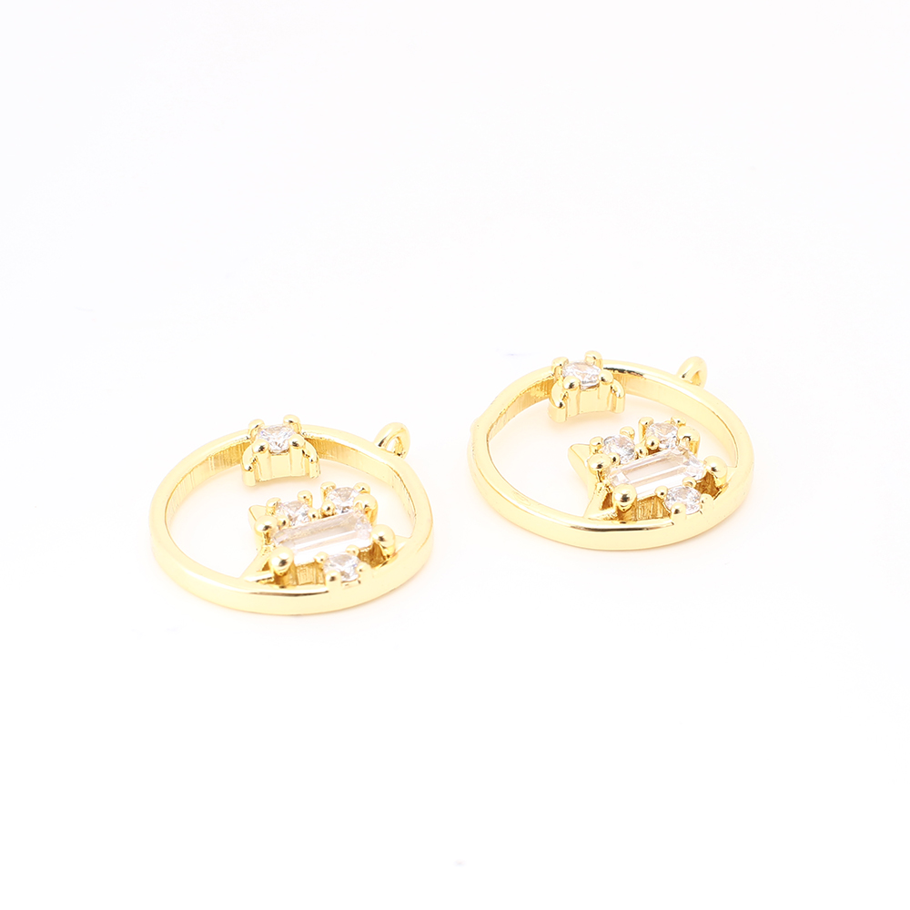 Cubique Pendentif en laiton zircon pavent, Rond, DIY & pavé de micro zircon & creux, doré, 11.5x10x3mm, Vendu par PC