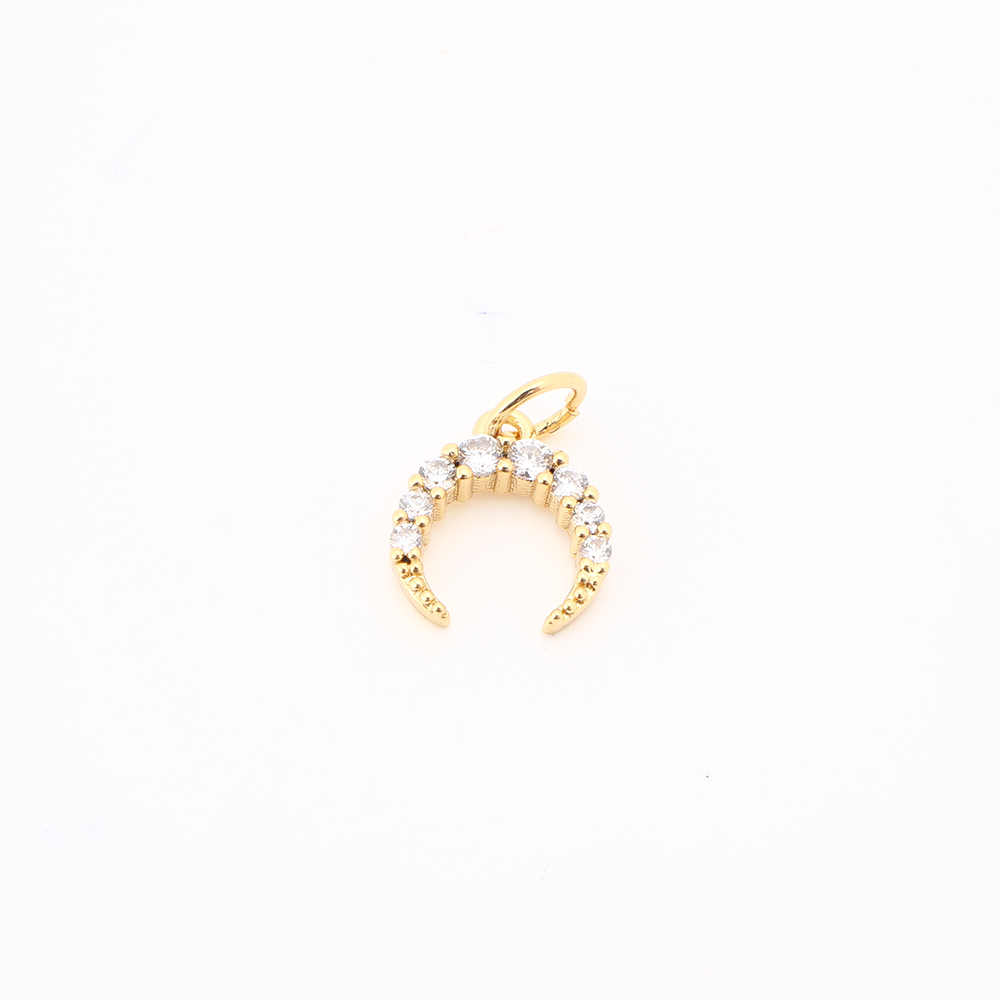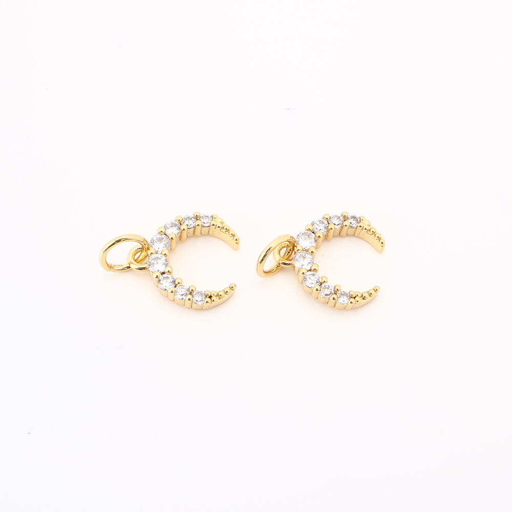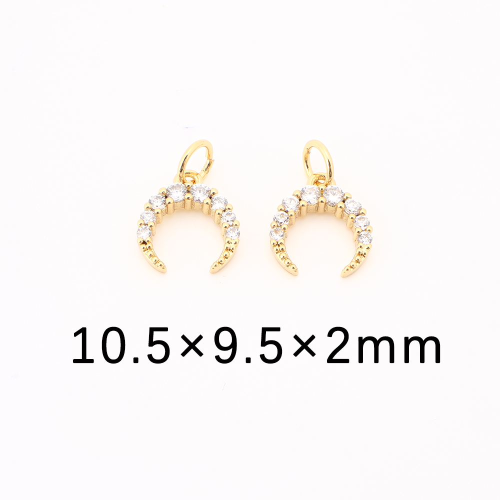 Cubique Pendentif en laiton zircon pavent, lune, DIY & pavé de micro zircon, doré, 10.5x9.5x2mm, Vendu par PC