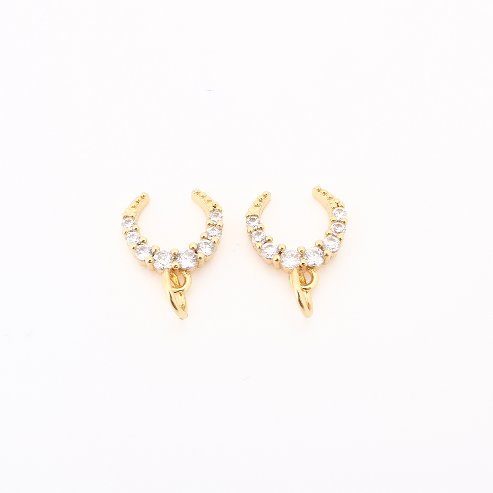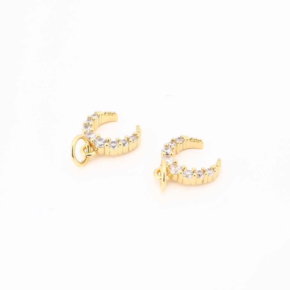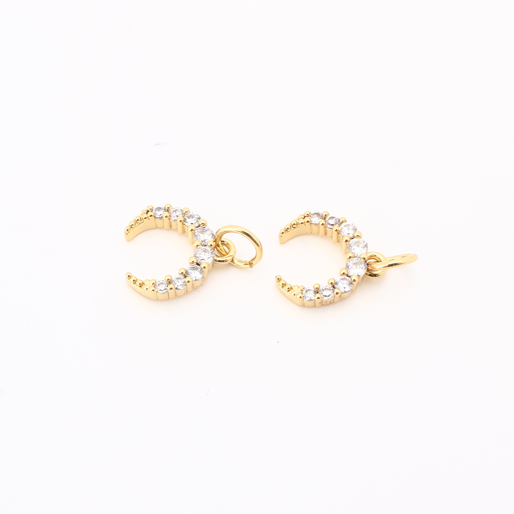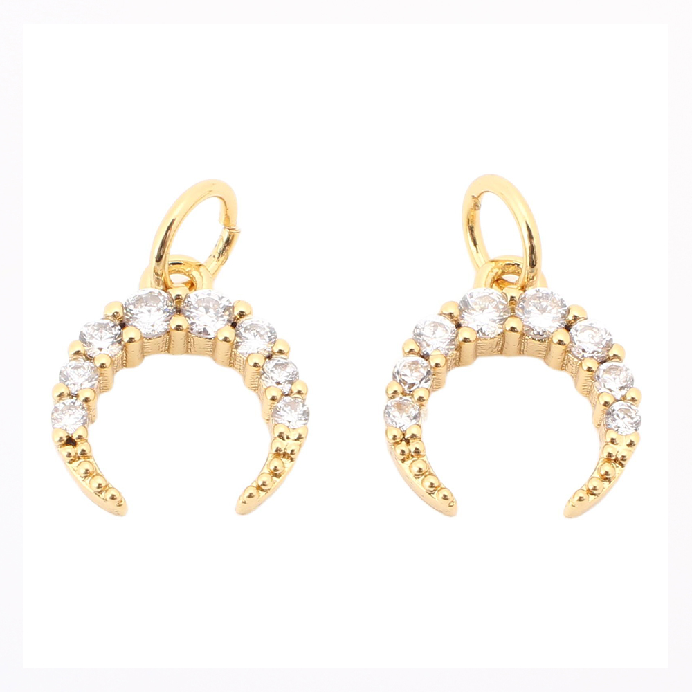 Cubique Pendentif en laiton zircon pavent, lune, DIY & pavé de micro zircon, doré, 10.5x9.5x2mm, Vendu par PC