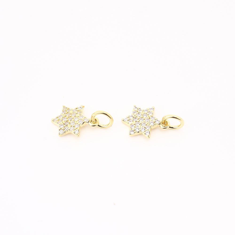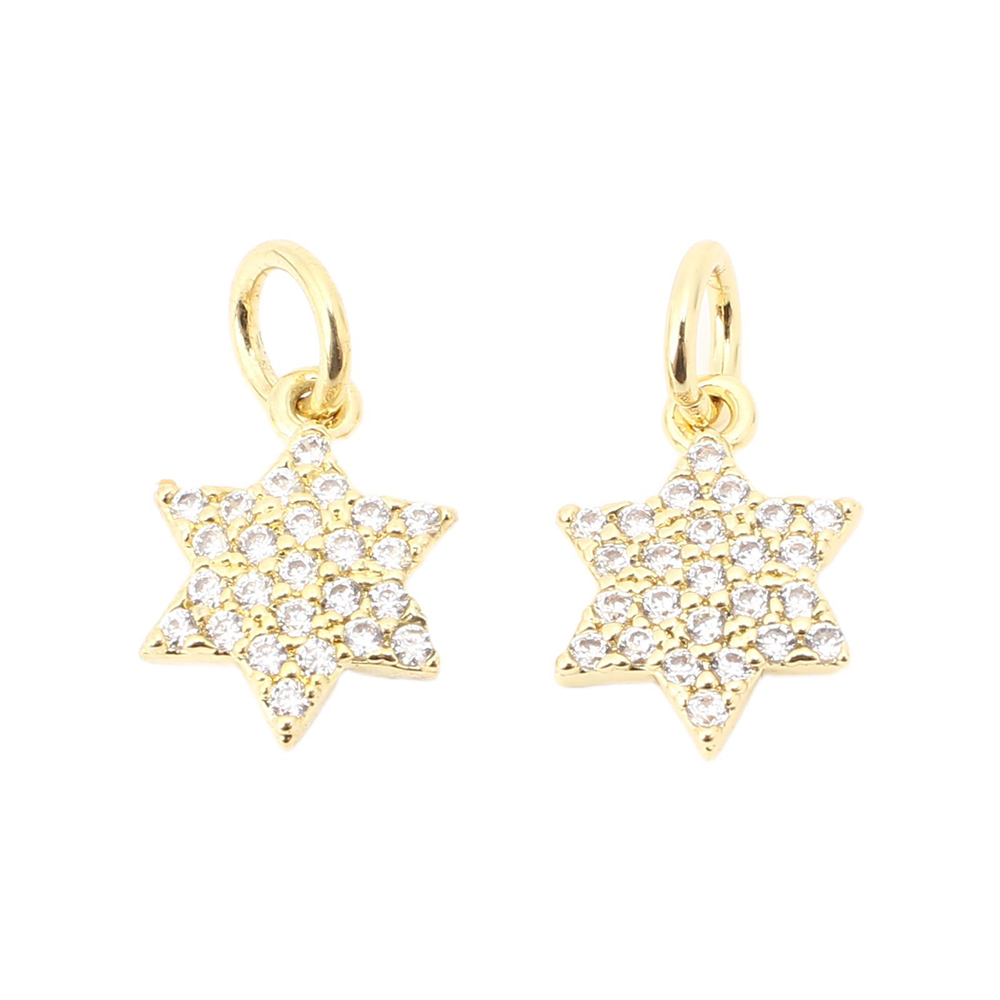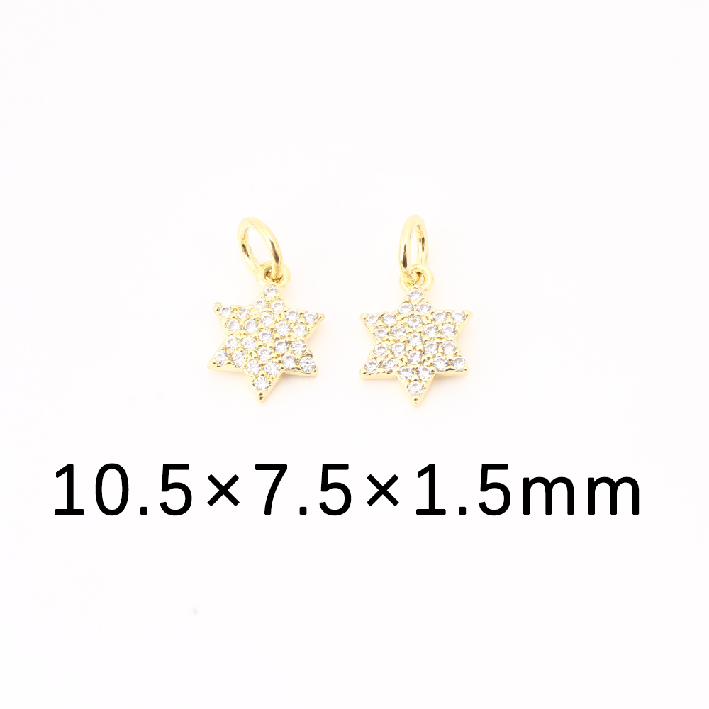 Cubique Pendentif en laiton zircon pavent, étoile, DIY & pavé de micro zircon, doré, 10.5x7.5x1.5mm, Vendu par PC