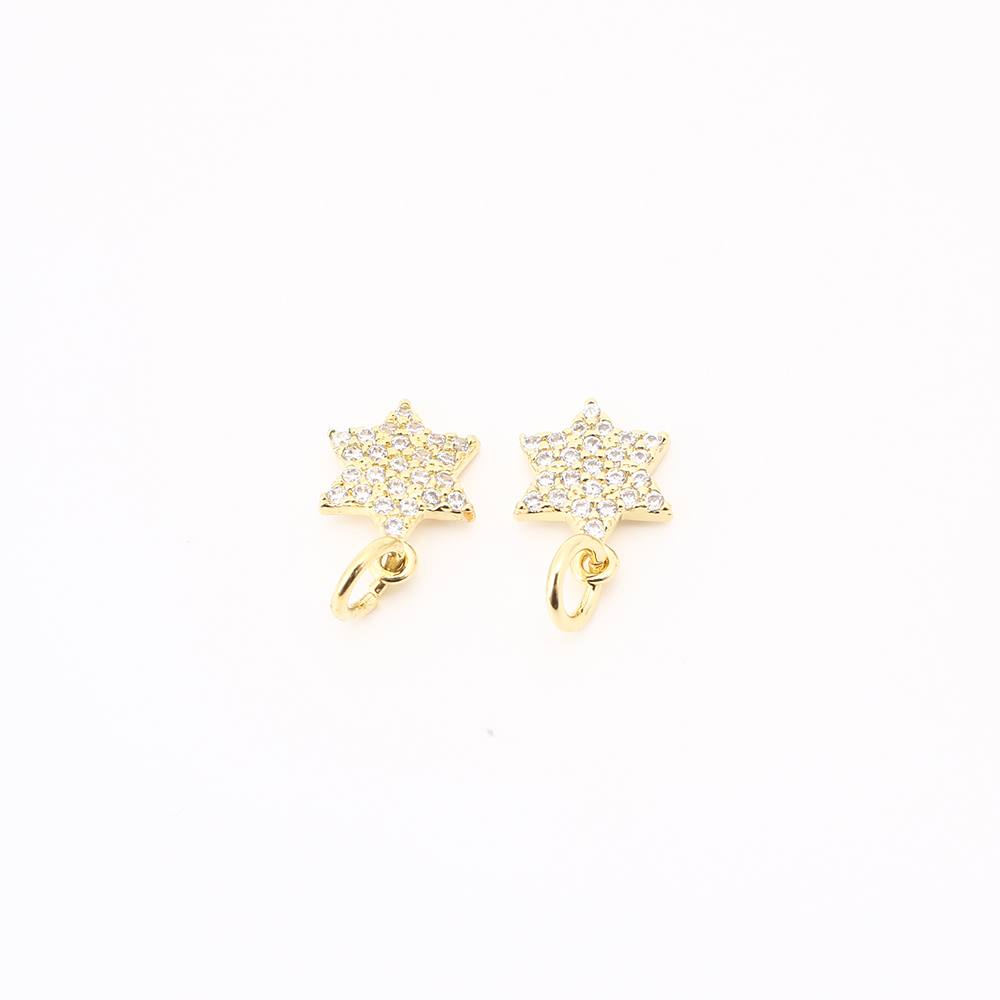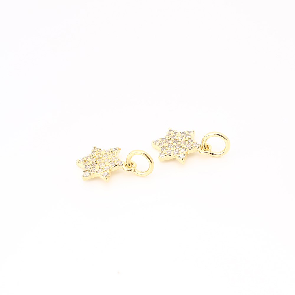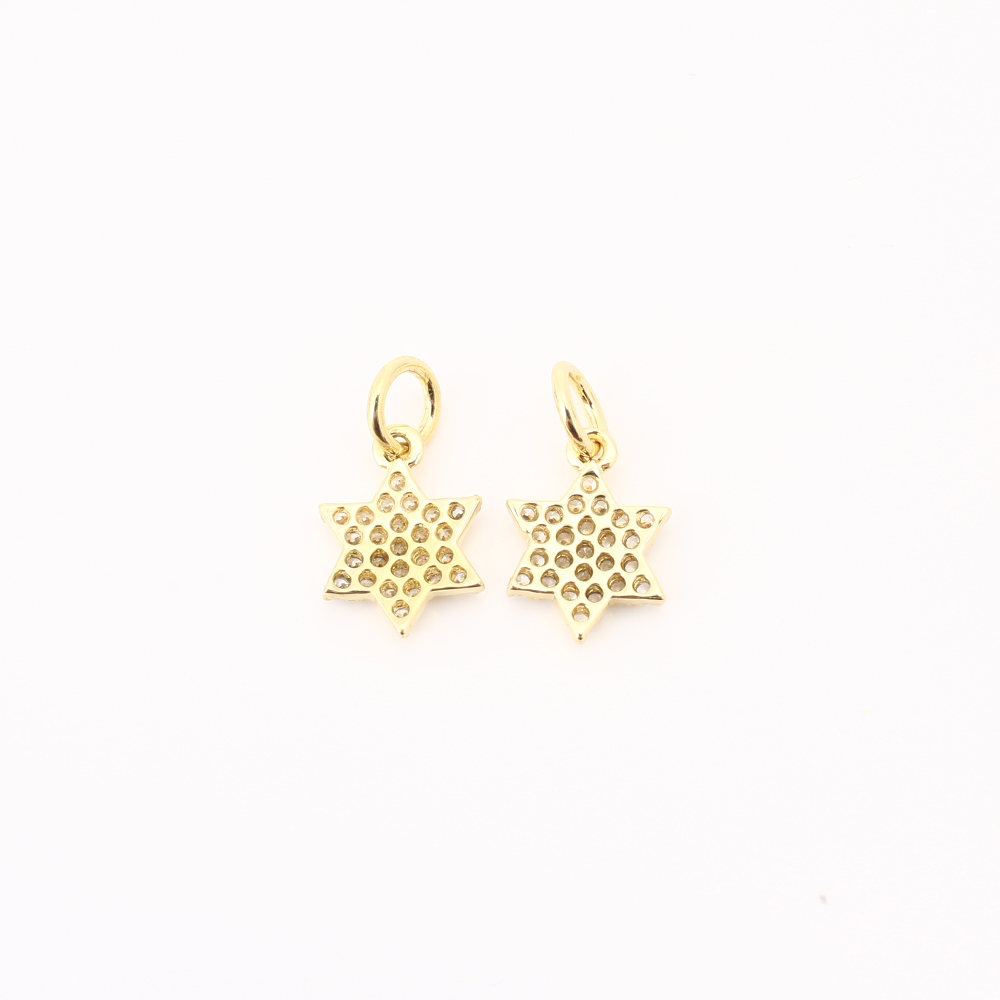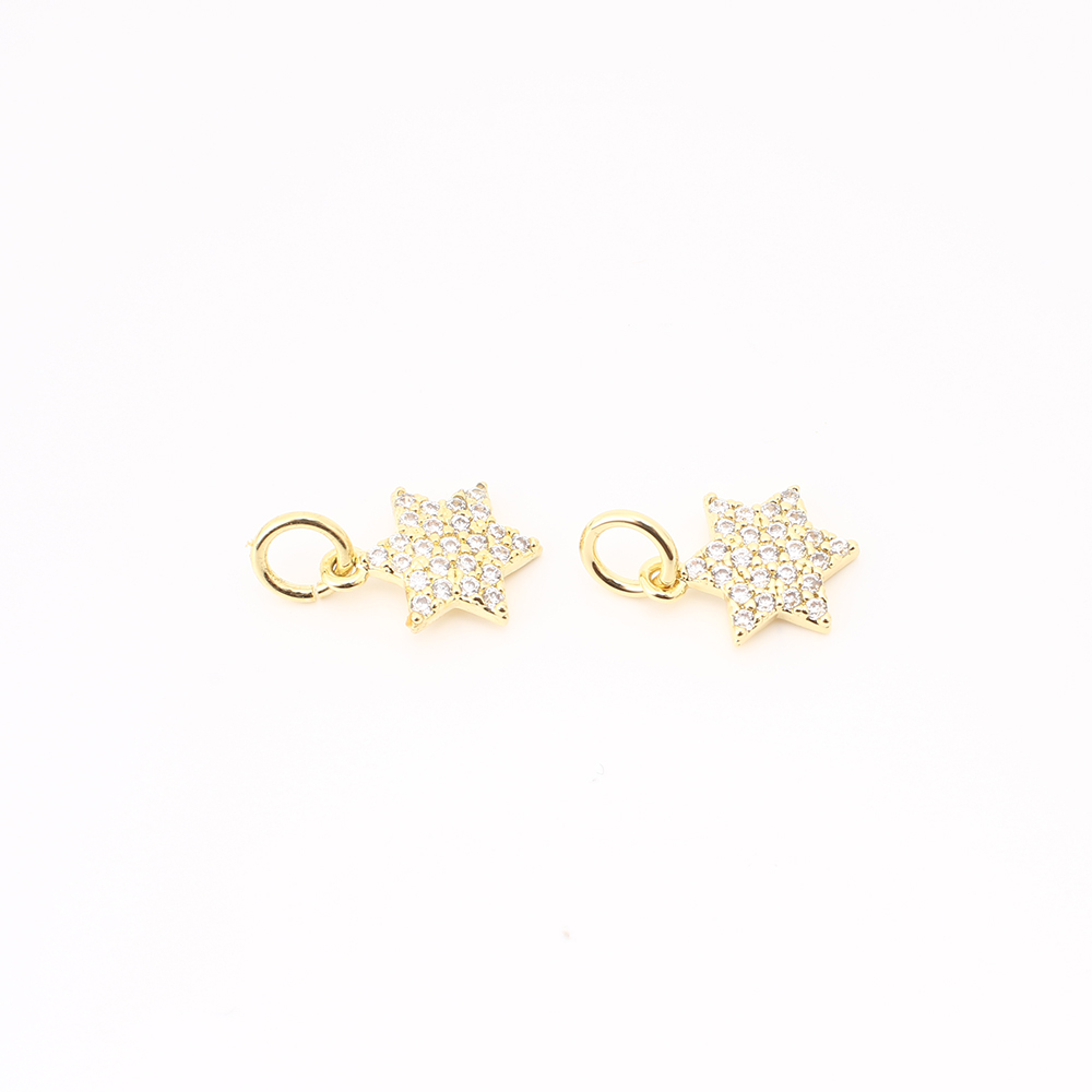 Cubique Pendentif en laiton zircon pavent, étoile, DIY & pavé de micro zircon, doré, 10.5x7.5x1.5mm, Vendu par PC