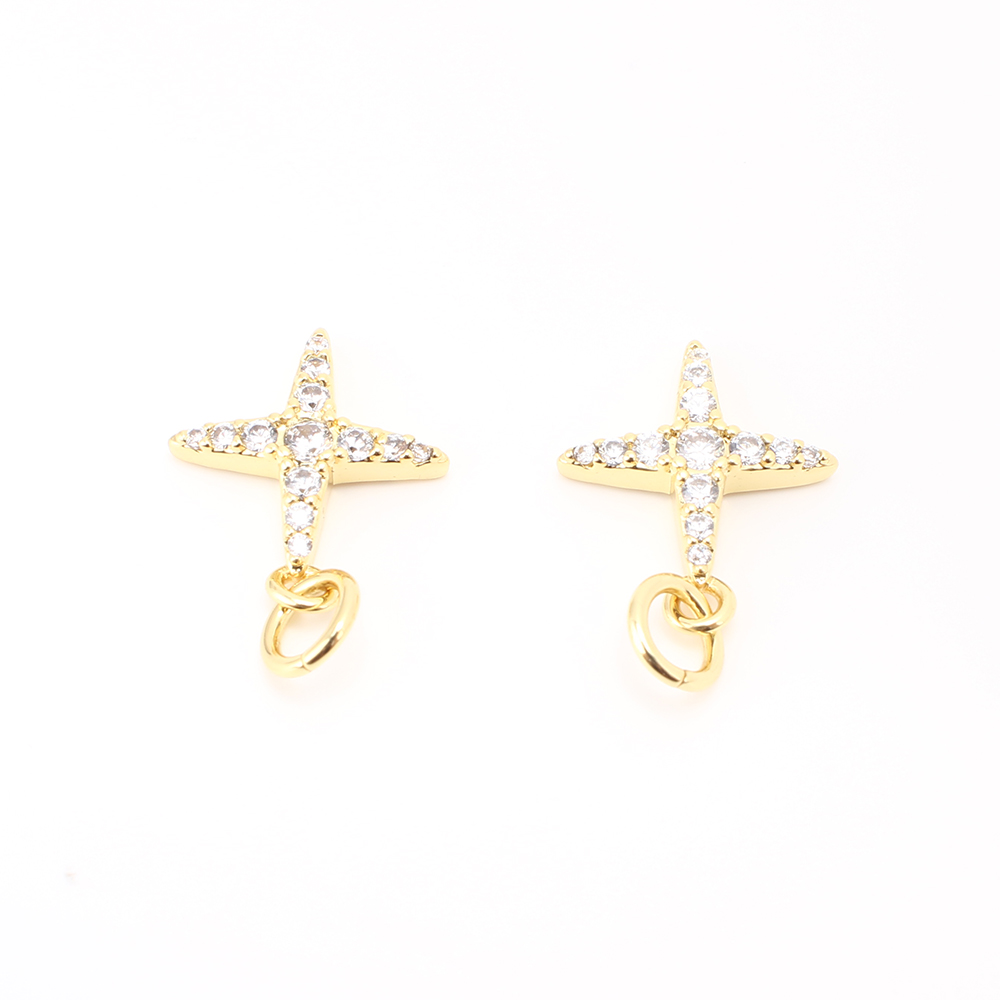 Cubique Pendentif en laiton zircon pavent, croix, DIY & pavé de micro zircon, Or, 13x11x2.5mm, Vendu par PC