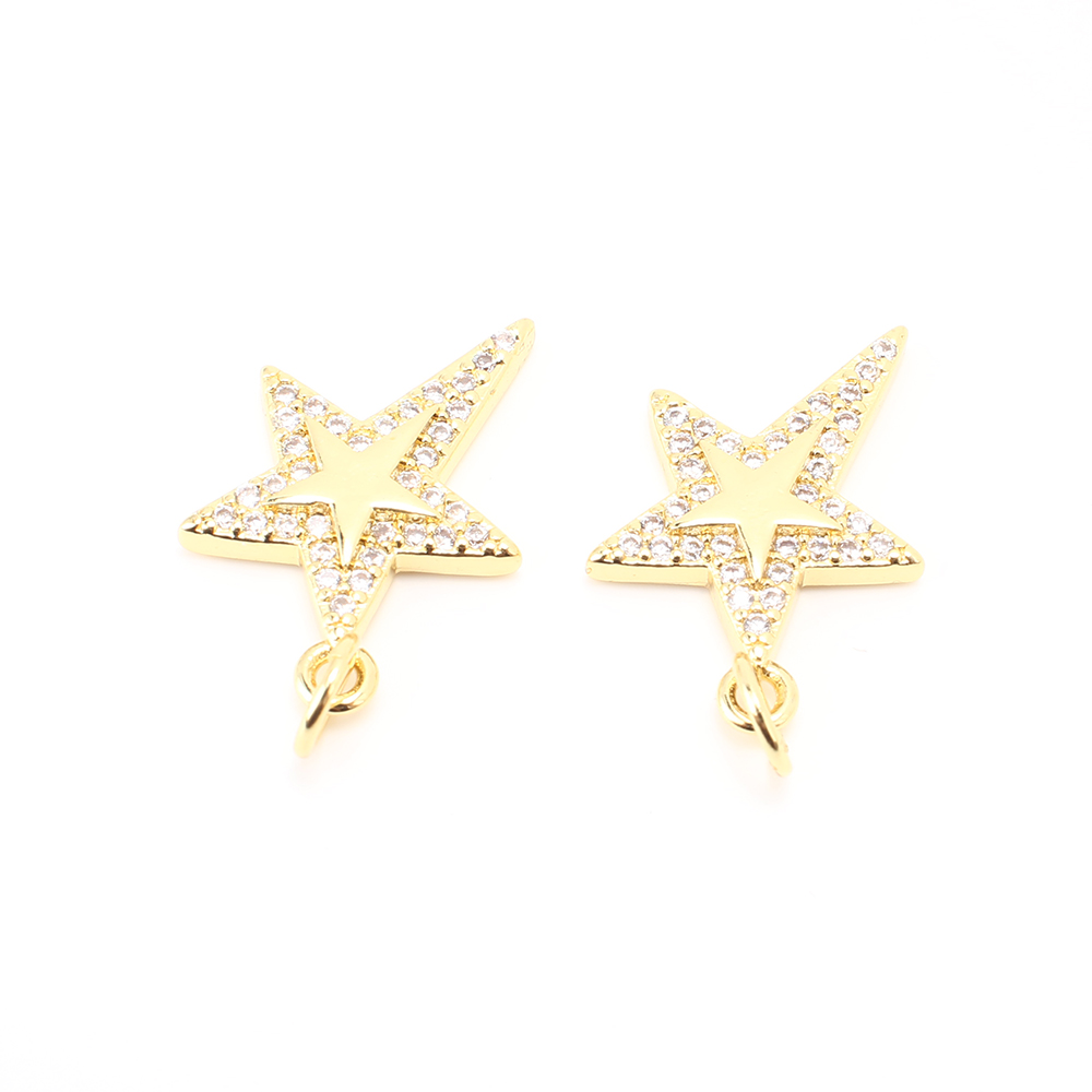 Cubique Pendentif en laiton zircon pavent, étoile, DIY & pavé de micro zircon, Or, 17x13x2mm, Vendu par PC