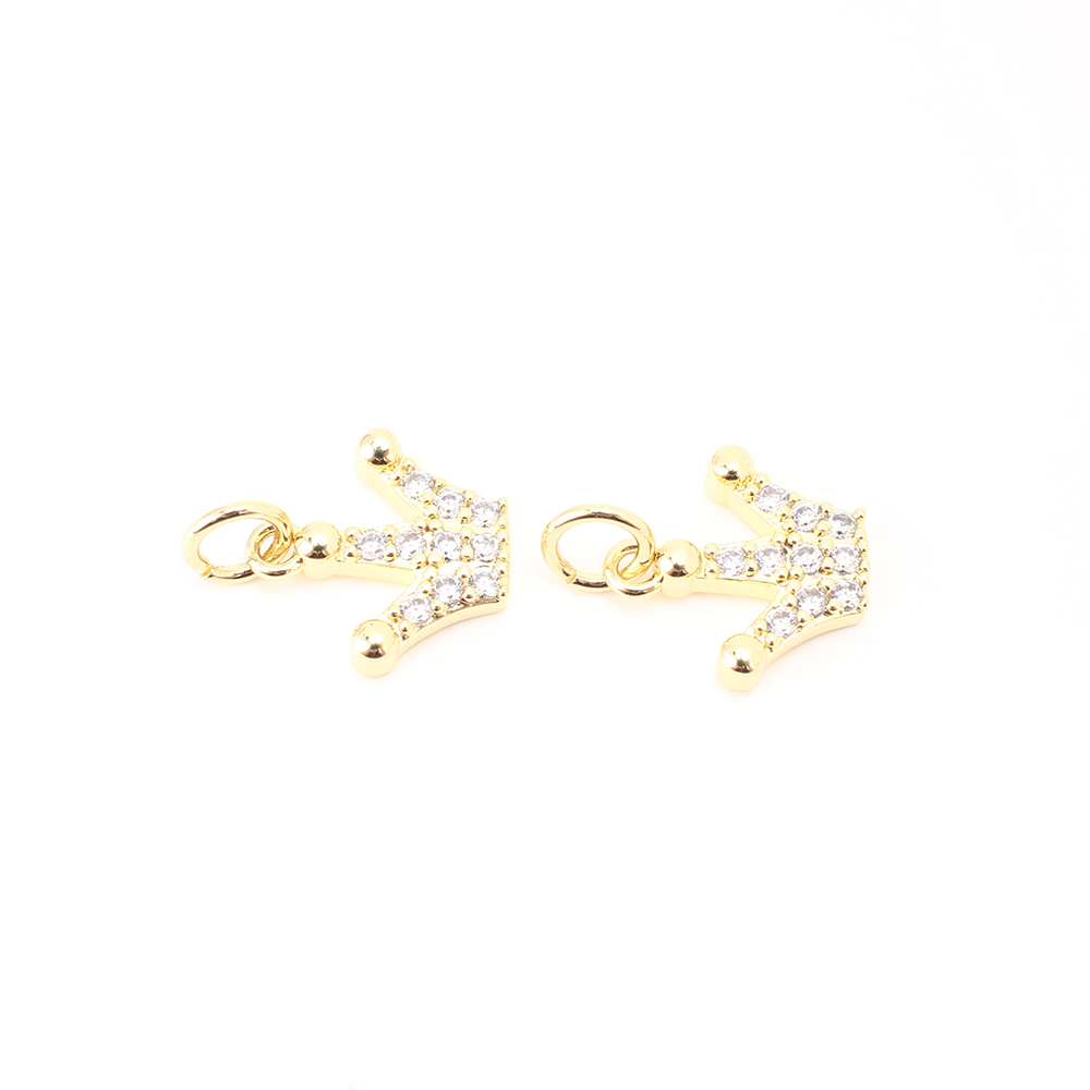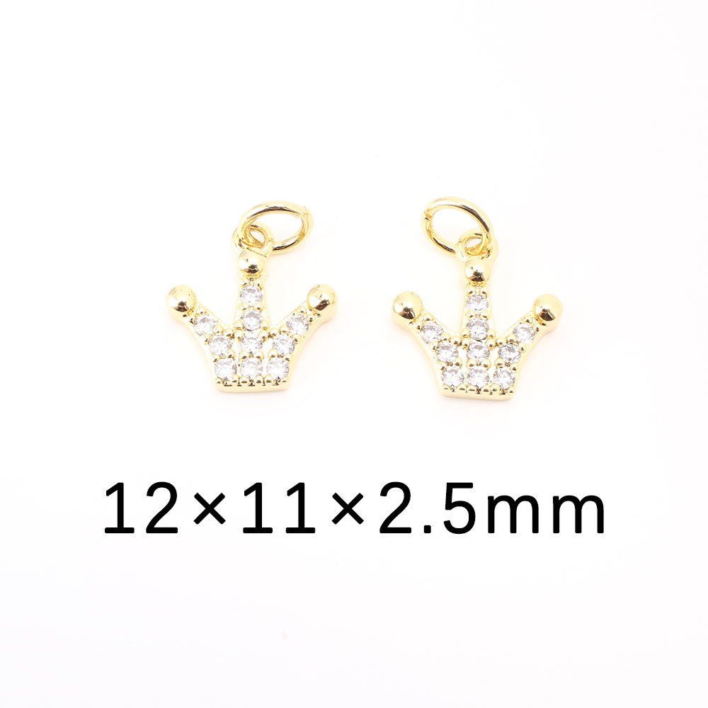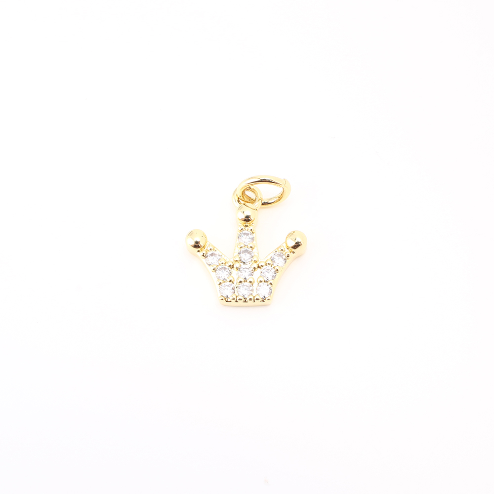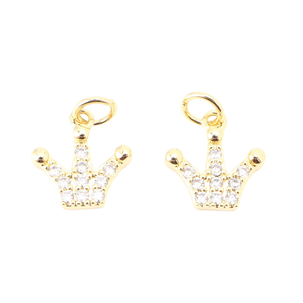 Cubique Pendentif en laiton zircon pavent, couronne, DIY & pavé de micro zircon, doré, 12x11x2.5mm, Vendu par PC