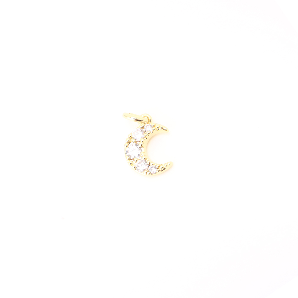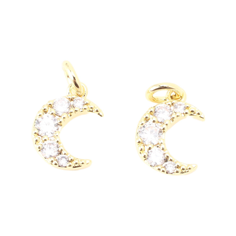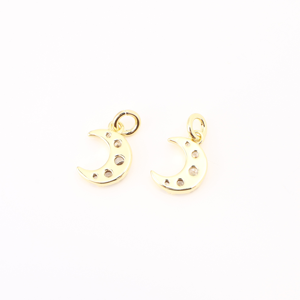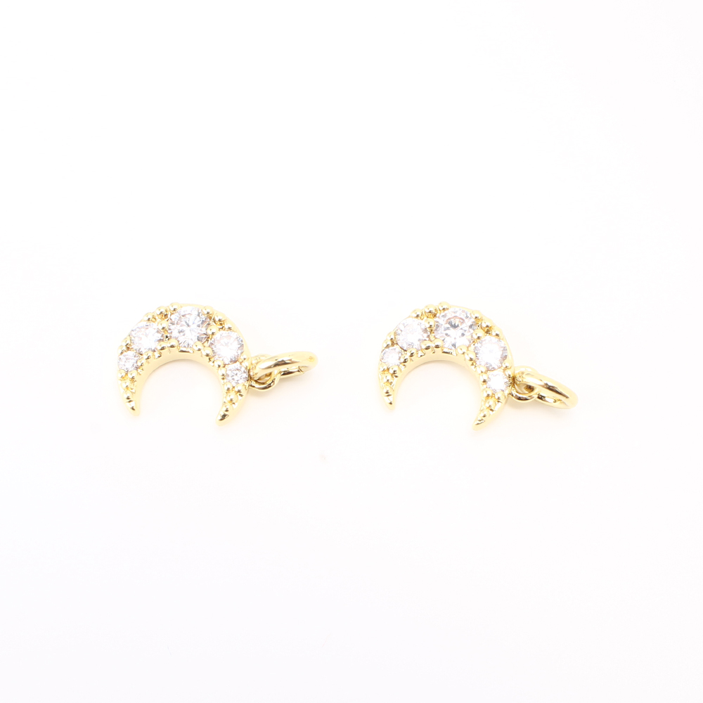 Cubique Pendentif en laiton zircon pavent, lune, DIY & pavé de micro zircon, doré, 9x7x2mm, Vendu par PC