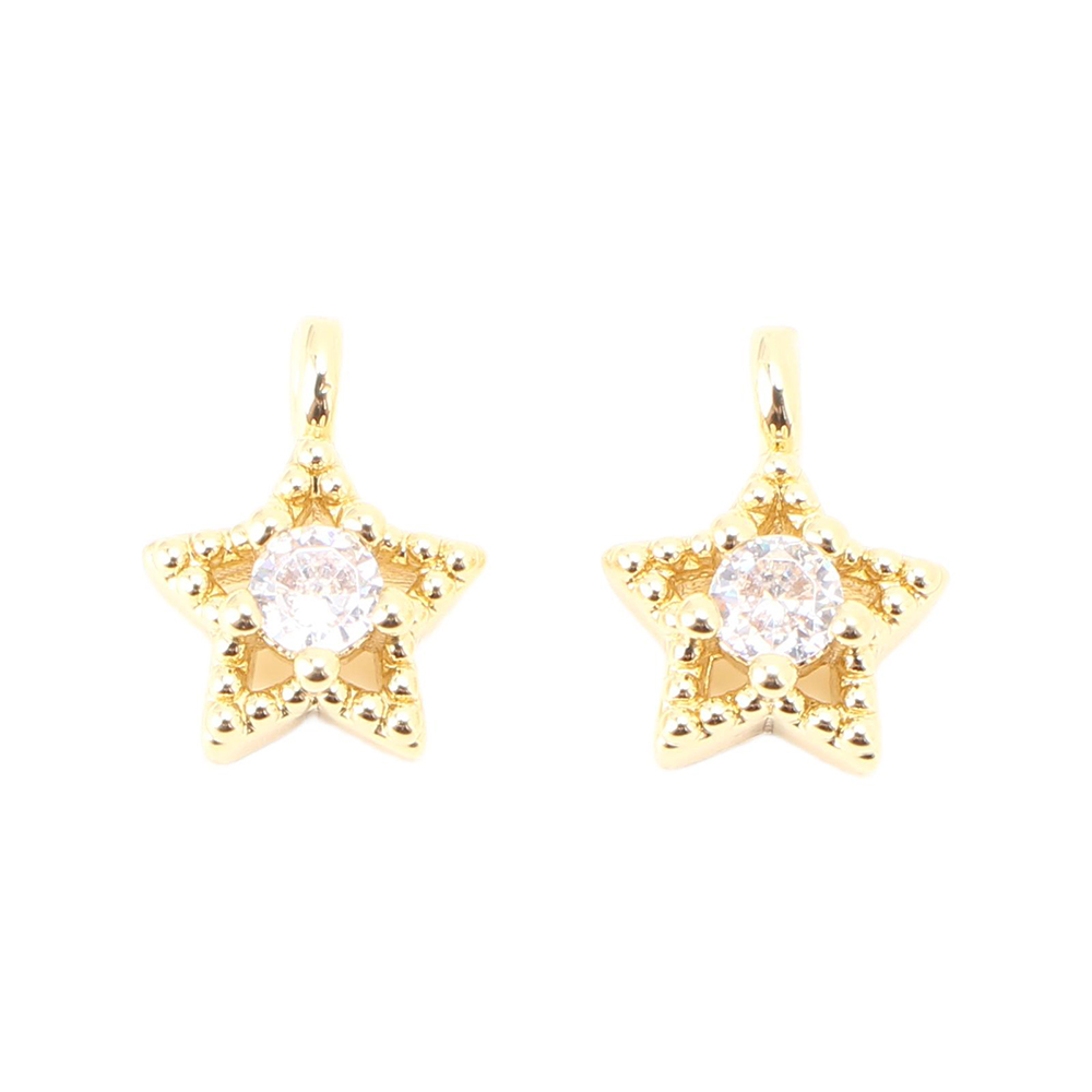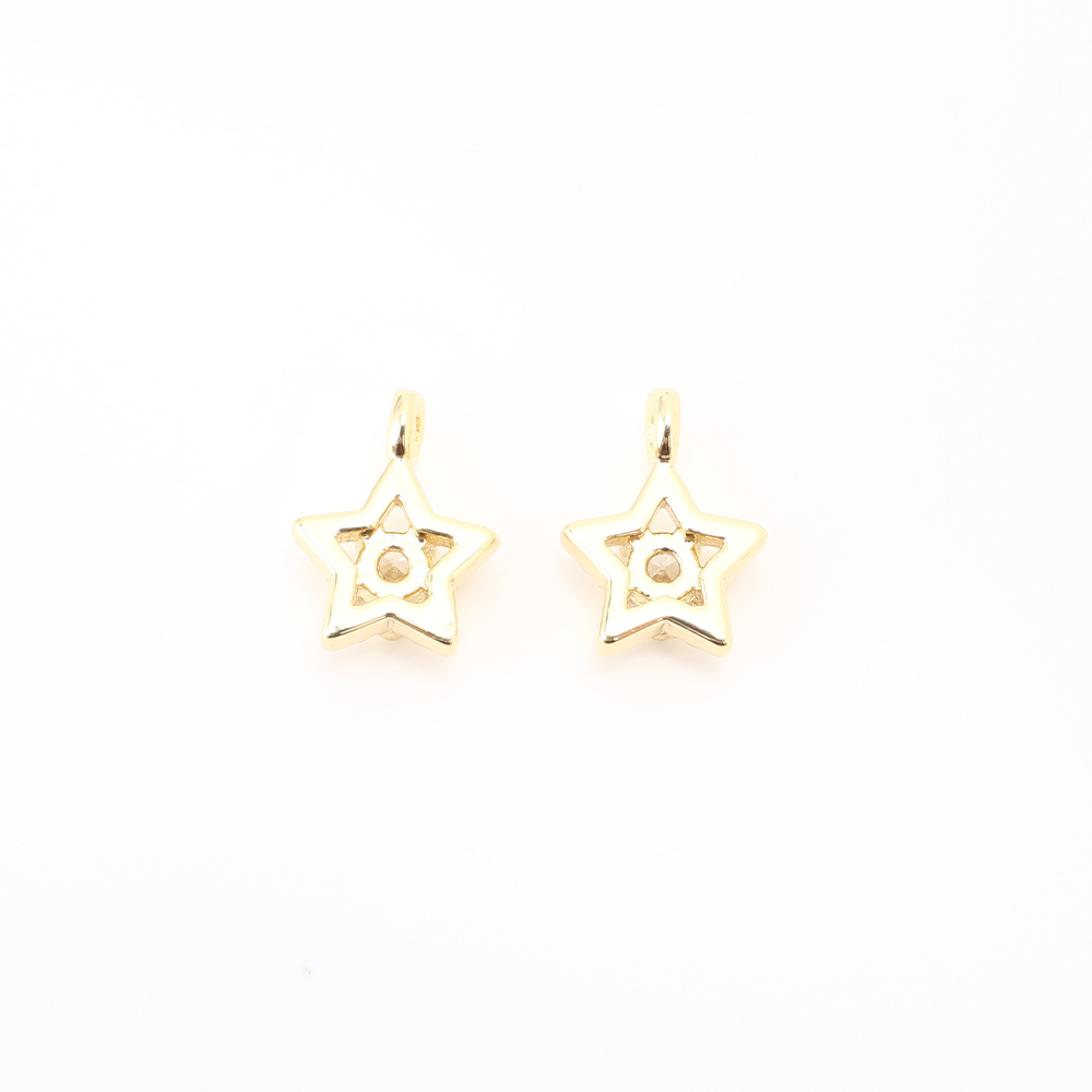 Cubique Pendentif en laiton zircon pavent, étoile, DIY & pavé de micro zircon & creux, doré, 10x8x3mm, Vendu par PC