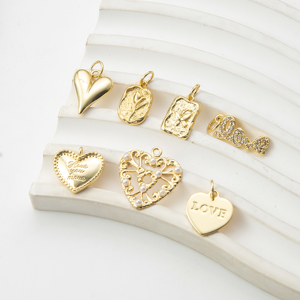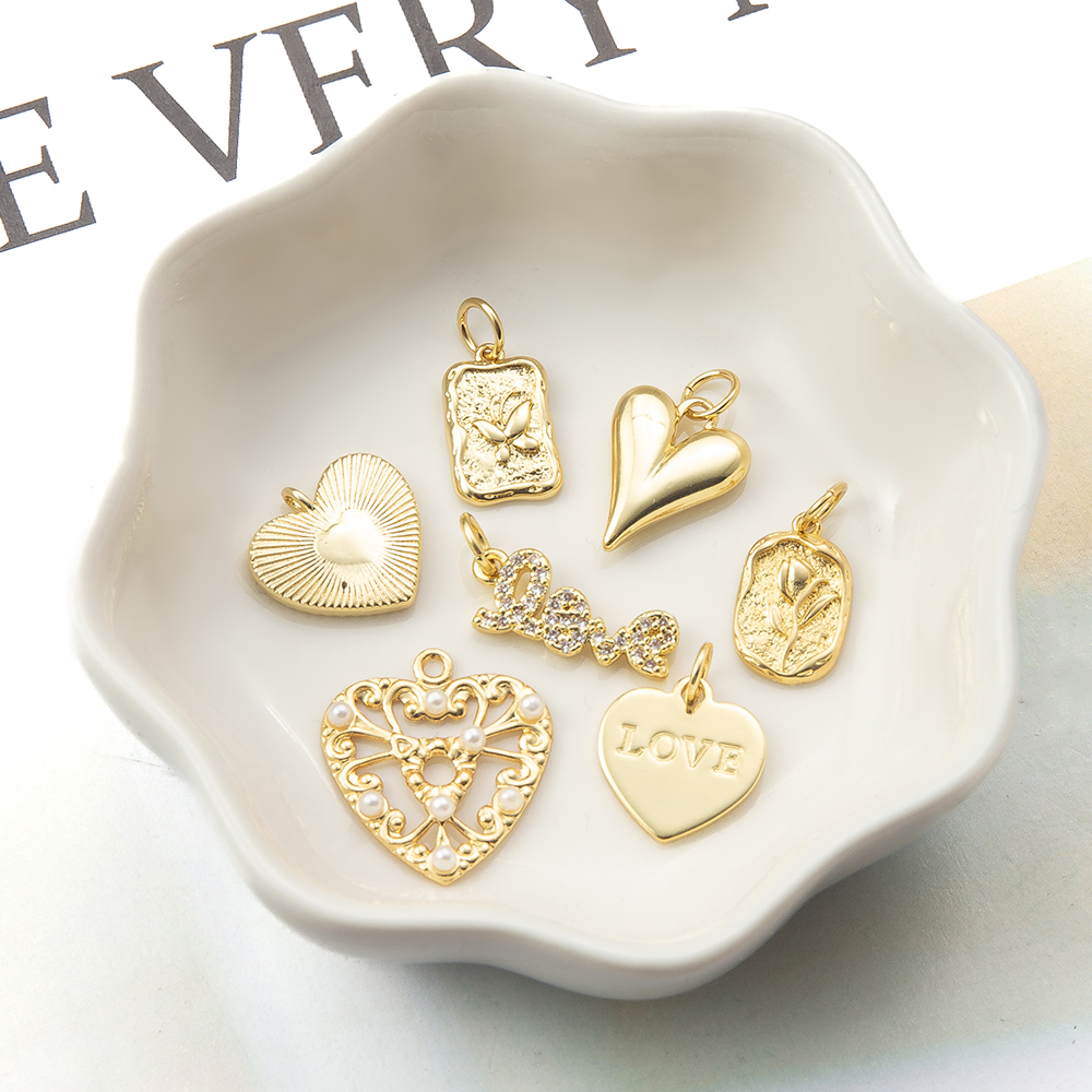 Cubique Pendentif en laiton zircon pavent, styles différents pour le choix & pavé de micro zircon, doré, Vendu par PC