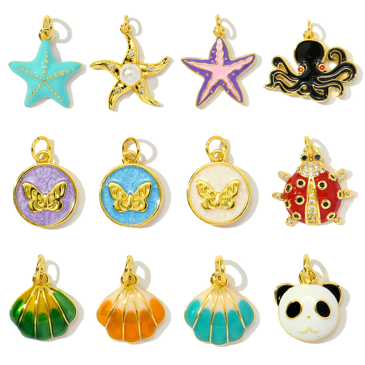 Cubique Pendentif en laiton zircon pavent, avec coquille, Placage, DIY & styles différents pour le choix & pavé de micro zircon, doré, Vendu par PC