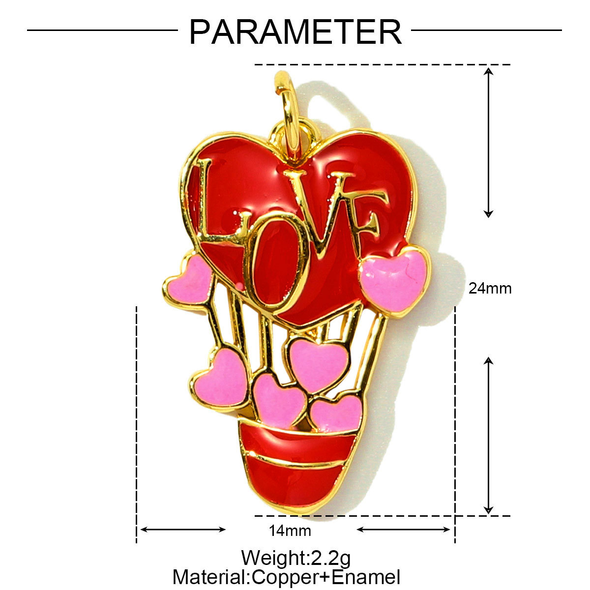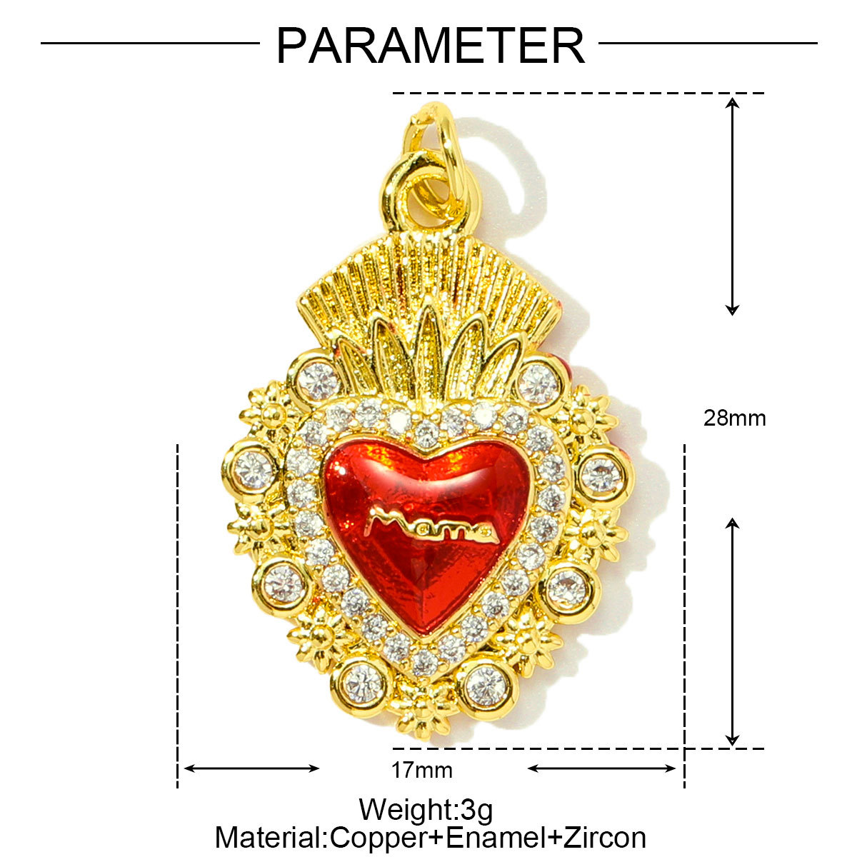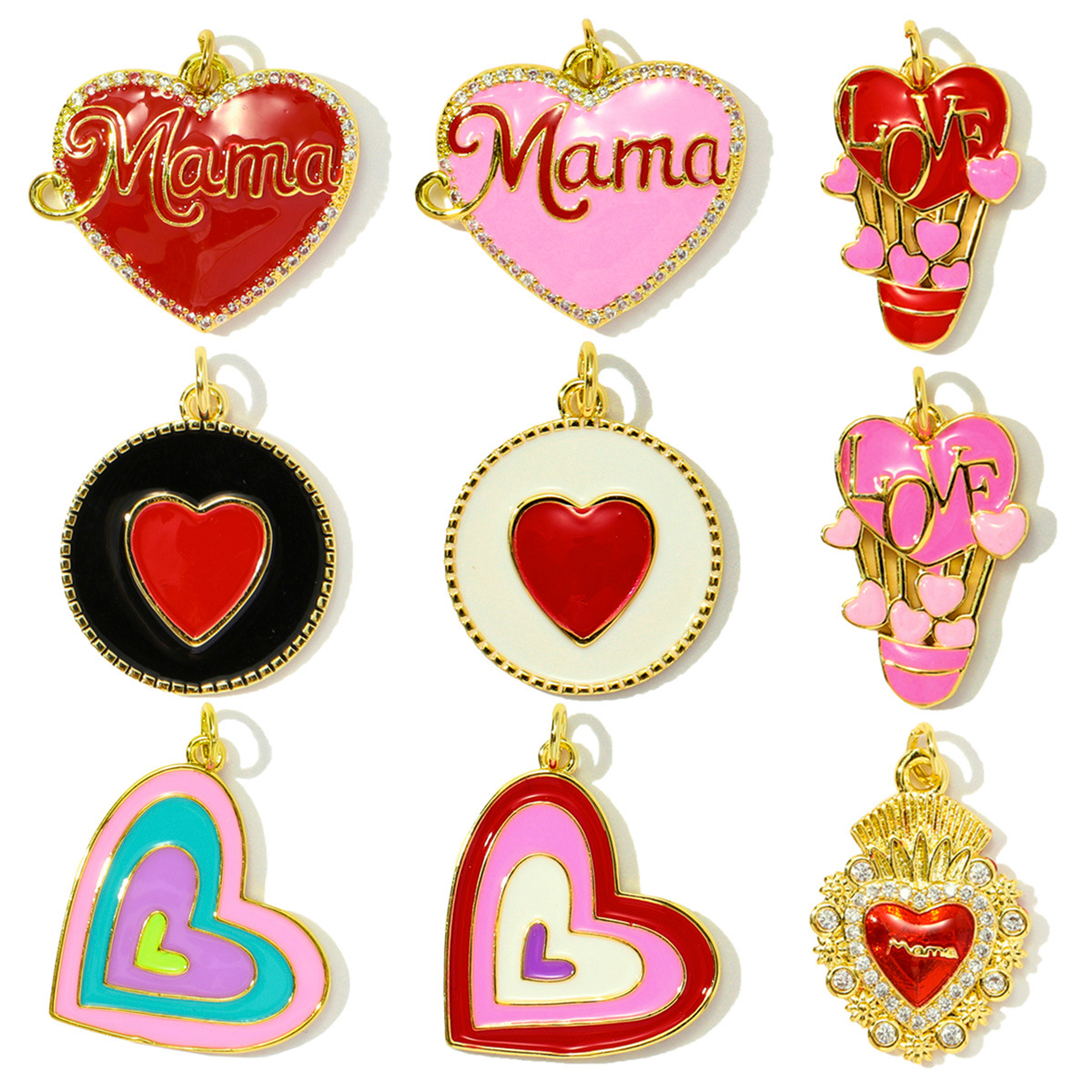 Cubique Pendentif en laiton zircon pavent, coeur, Placage, DIY & pavé de micro zircon & émail, plus de couleurs à choisir, 3PC/sac, Vendu par sac