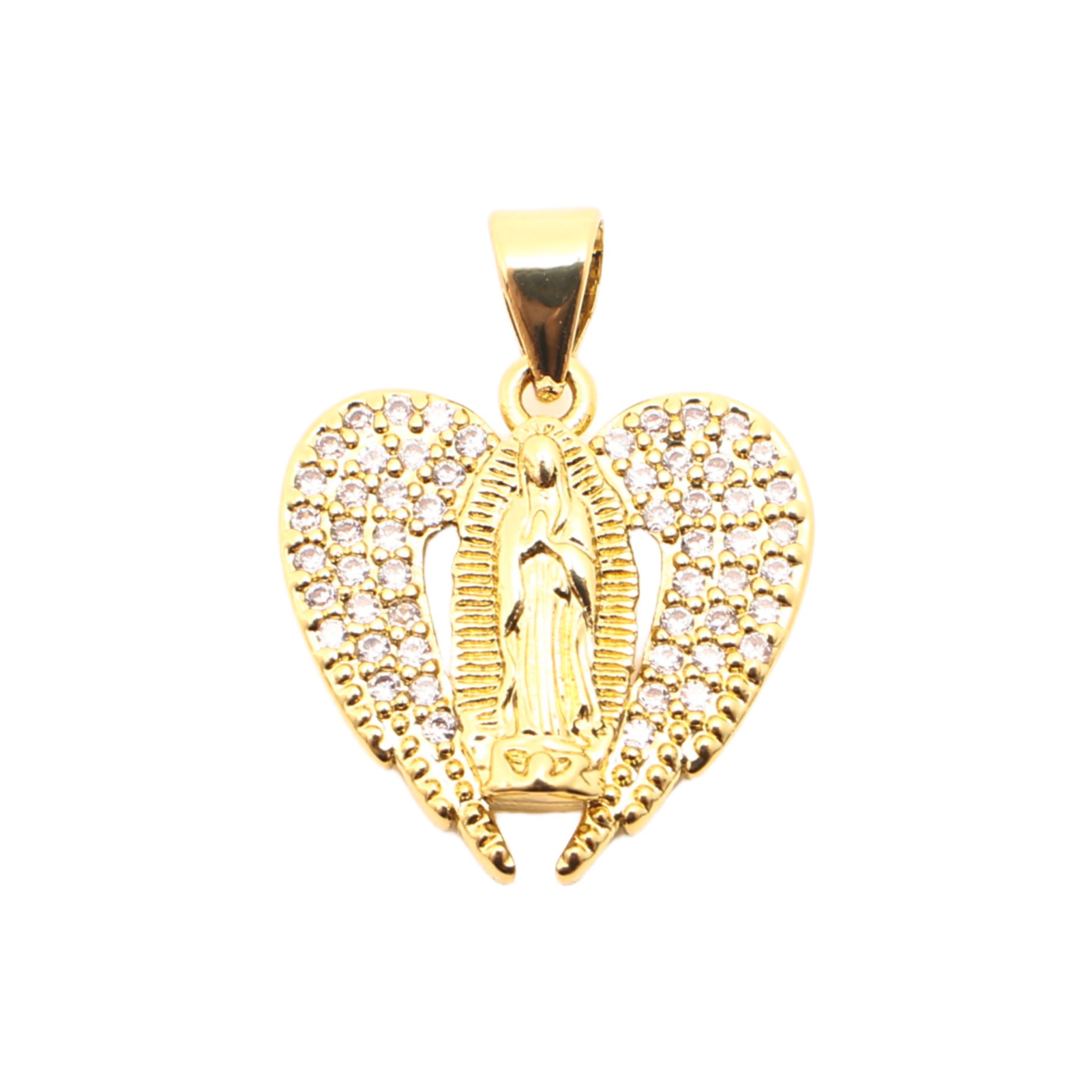Cubique Pendentif en laiton zircon pavent, coeur, DIY & pavé de micro zircon & creux, doré, 22x17x5mm, Vendu par PC