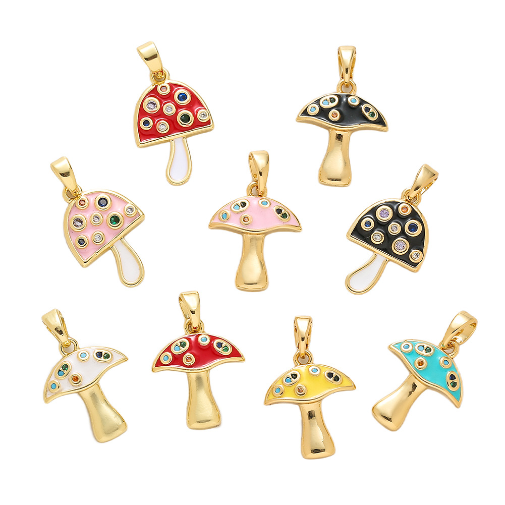 Cubique Pendentif en laiton zircon pavent, avec cristal, champignon, Placage, DIY & pavé de micro zircon & émail, plus de couleurs à choisir, Vendu par PC