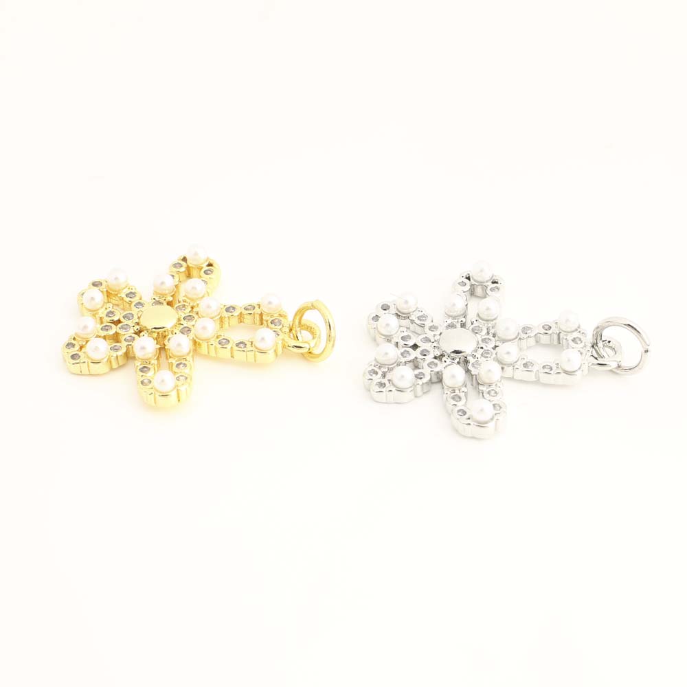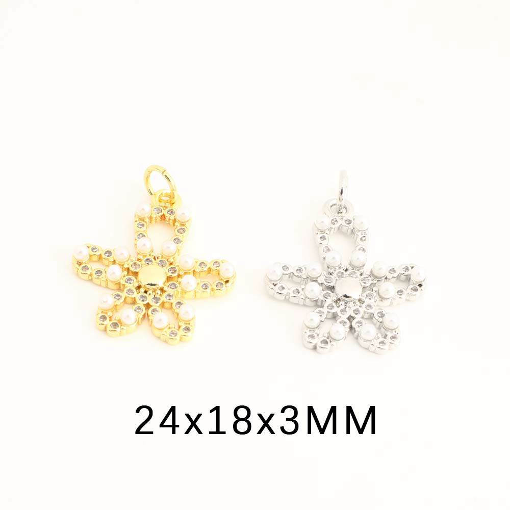Cubique Pendentif en laiton zircon pavent, fleur, Placage de couleur d'or, bijoux de mode & DIY & pavé de micro zircon, plus de couleurs à choisir Vendu par PC
