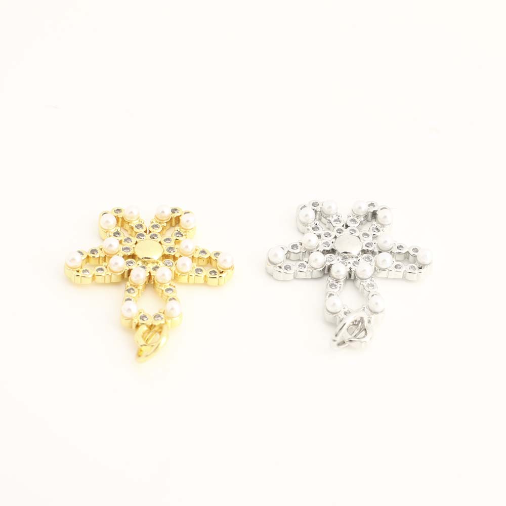 Cubique Pendentif en laiton zircon pavent, avec perle de plastique, croix, Placage, DIY & pavé de micro zircon, plus de couleurs à choisir, Vendu par PC
