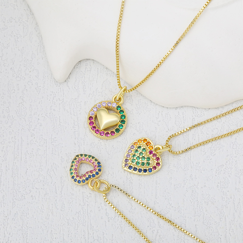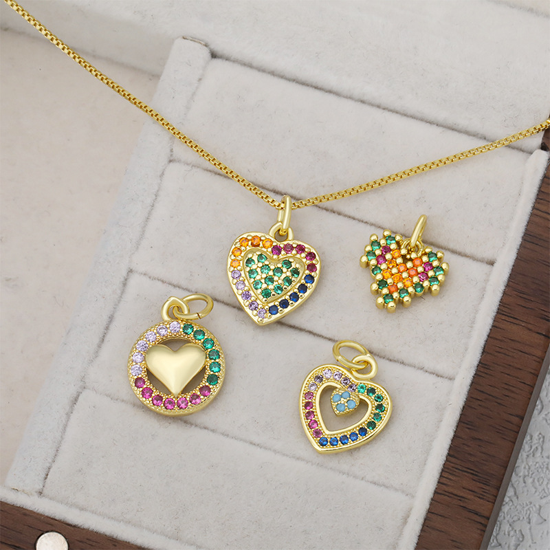 Cubique Pendentif en laiton zircon pavent, coeur, Placage, DIY & pavé de micro zircon, doré, Vendu par PC
