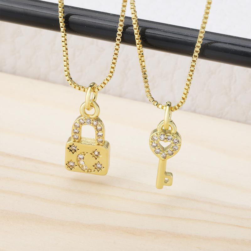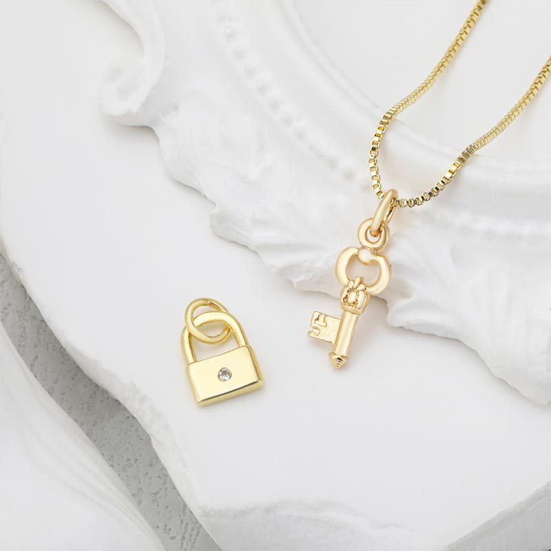 Cubique Pendentif en laiton zircon pavent, Blocage et clé, Placage, DIY & pavé de micro zircon, doré, Vendu par PC