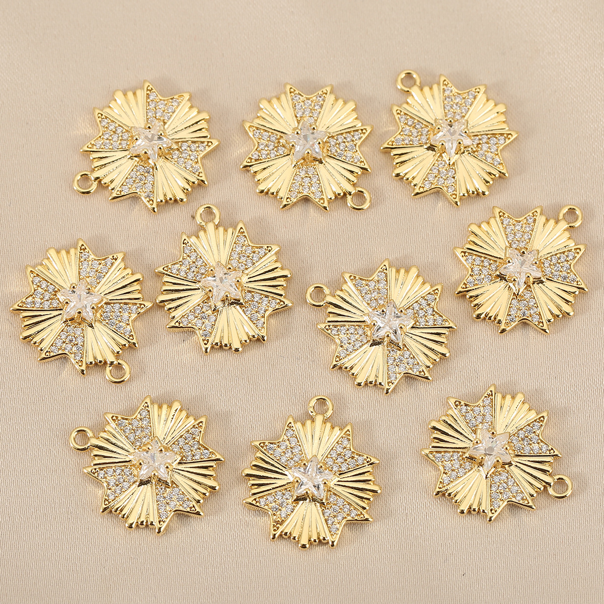 Cubique Pendentif en laiton zircon pavent, fleur, Placage de couleur d'or, bijoux de mode & DIY & pavé de micro zircon, plus de couleurs à choisir Vendu par PC
