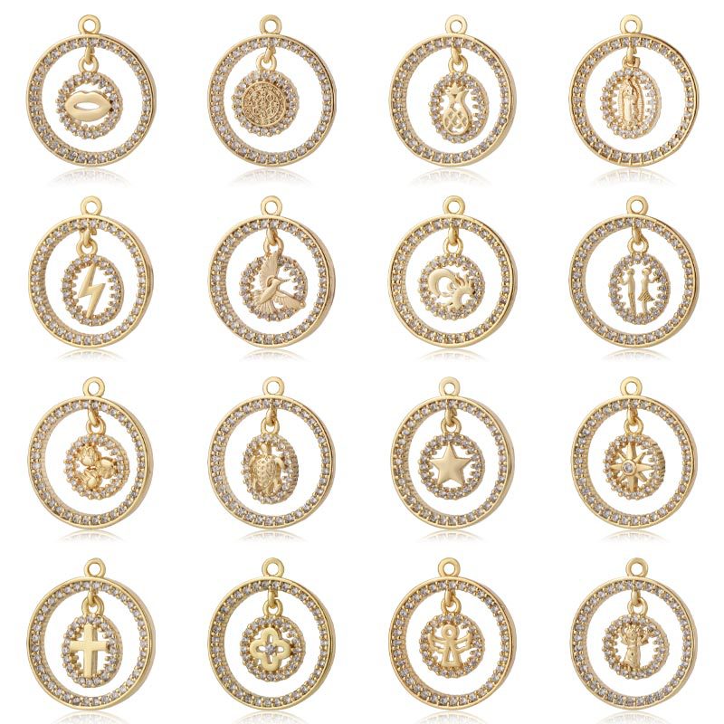 Cubique Pendentif en laiton zircon pavent, styles différents pour le choix & pavé de micro zircon, doré, Vendu par PC