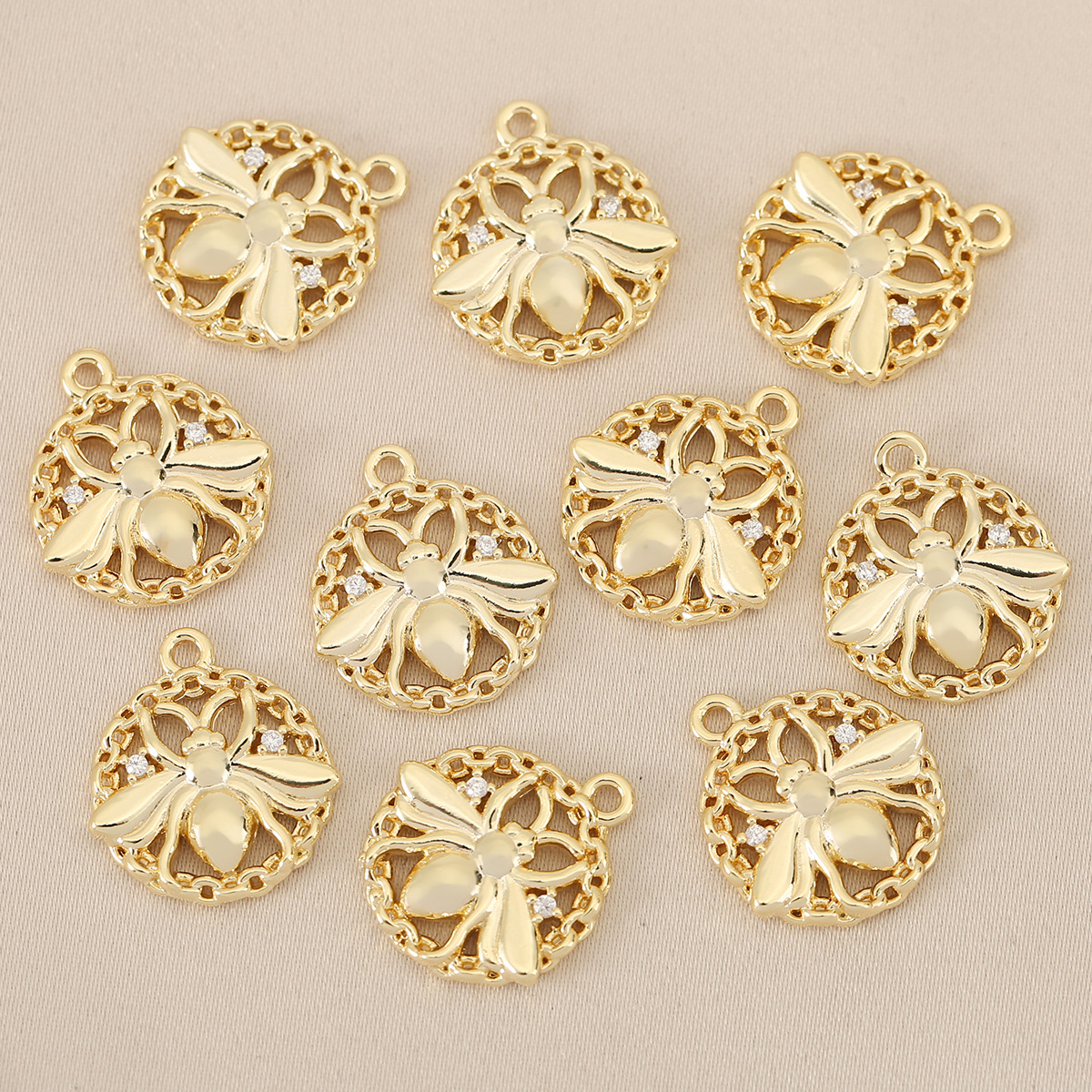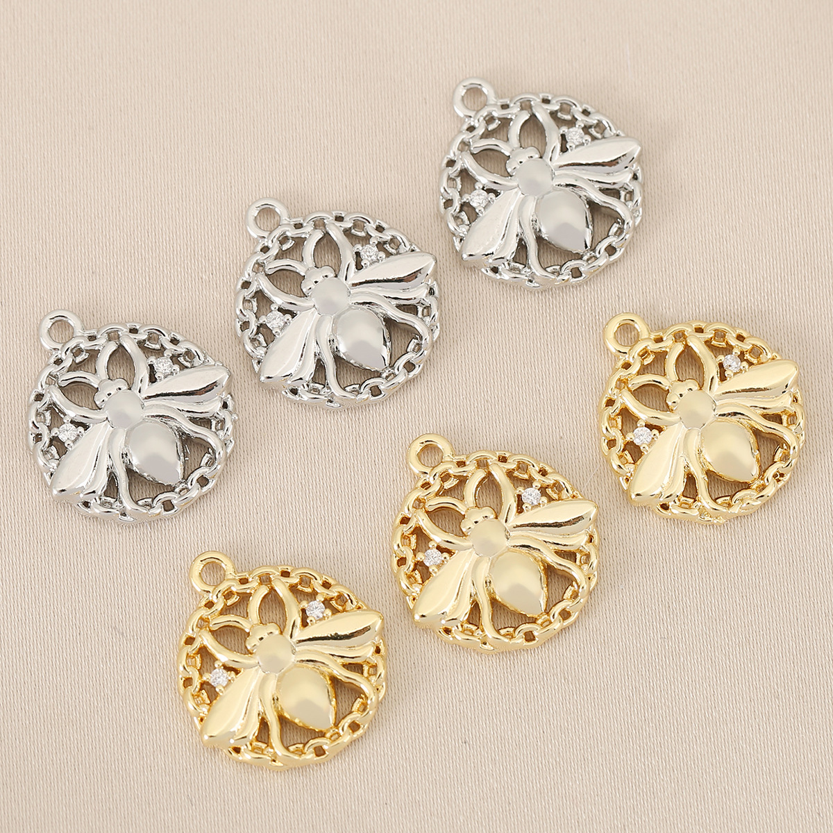 Cubique Pendentif en laiton zircon pavent, abeille, Placage, DIY & pavé de micro zircon & creux, plus de couleurs à choisir, 10PC/sac, Vendu par sac